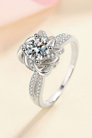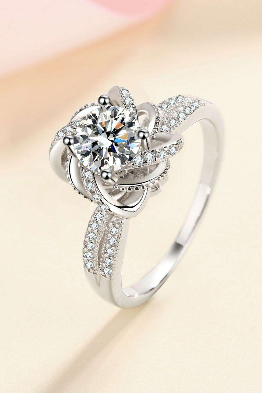 Sophisticated 1 Carat Moissanite Sterling Silver Ring with Rhodium-Plated Radiance - Timeless Luxury