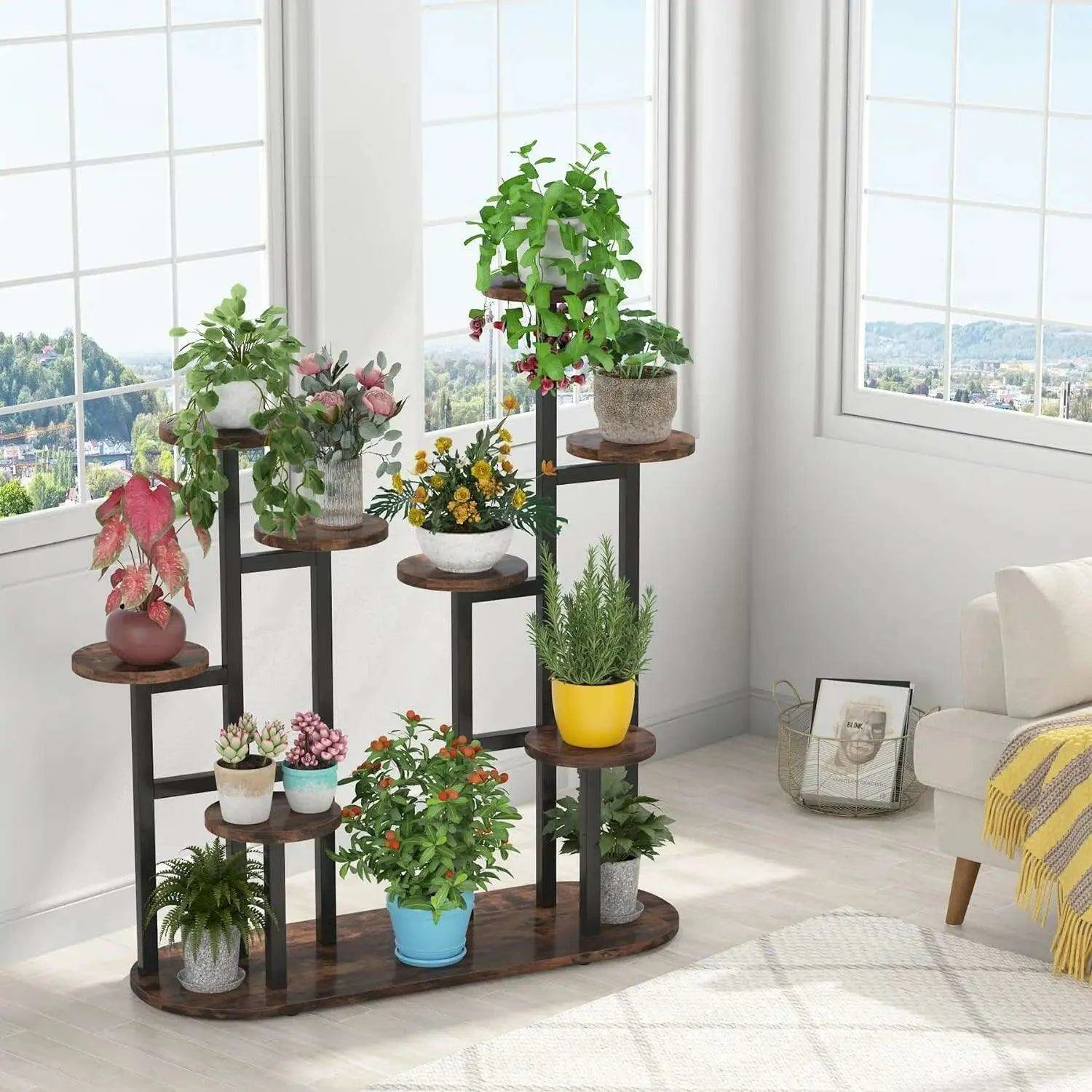11-Pot Wooden Plant Stand Shelf - Vertical Space Maximizing Flower Organizer