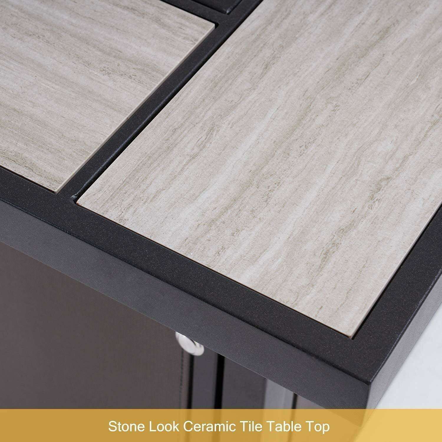 - Convenient Storage: Designed with a spacious interior compartment, this fire pit table accommodates a standard 20 lb propane tank (tank not included), ensuring that your relaxation is uninterrupted.