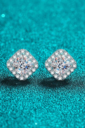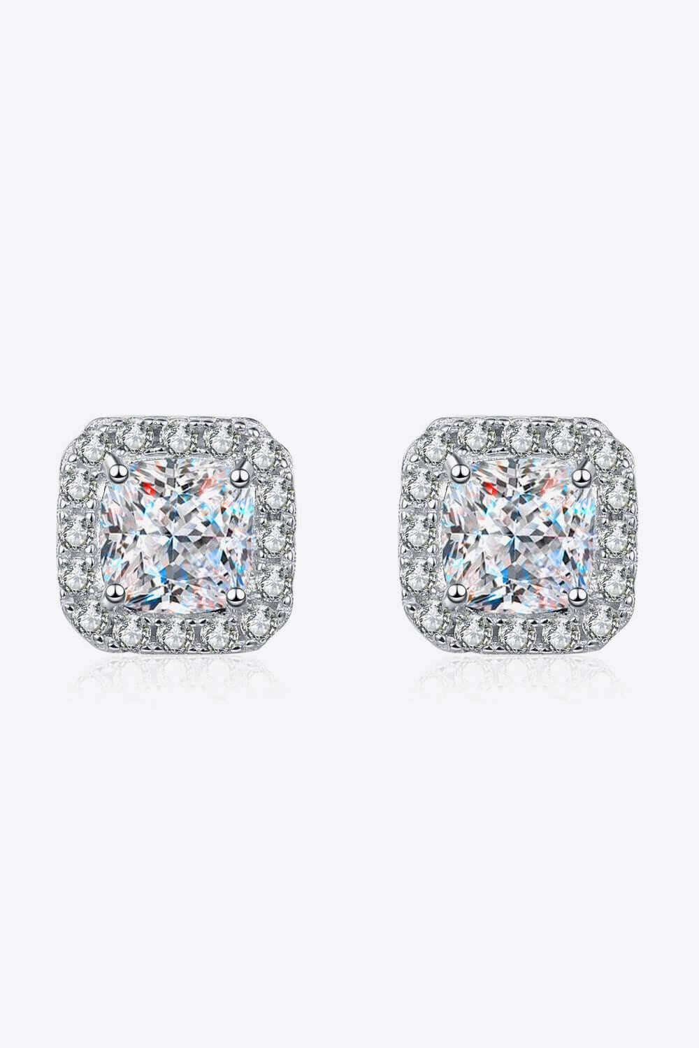 Elegant Square Silver Stud Earrings with Lab-Created Diamonds