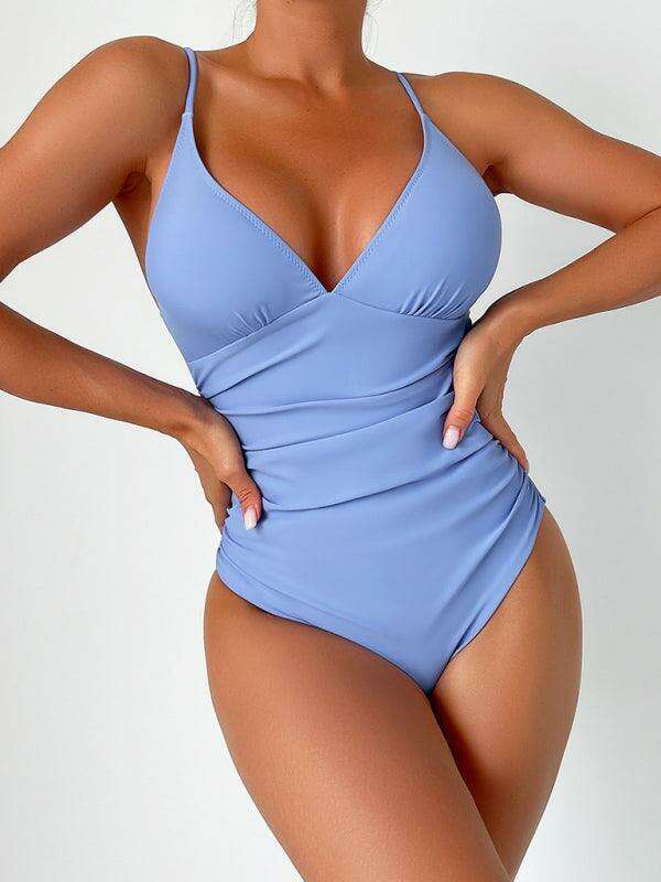 Alluring Elegance Deep V Neck One-Piece Swimsuit for Stunning Summer Style