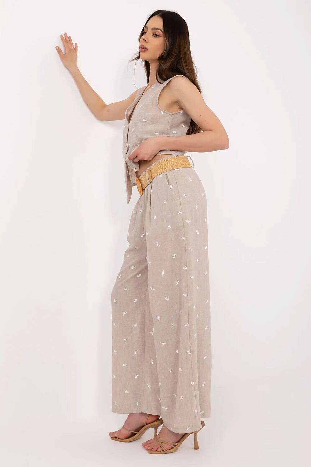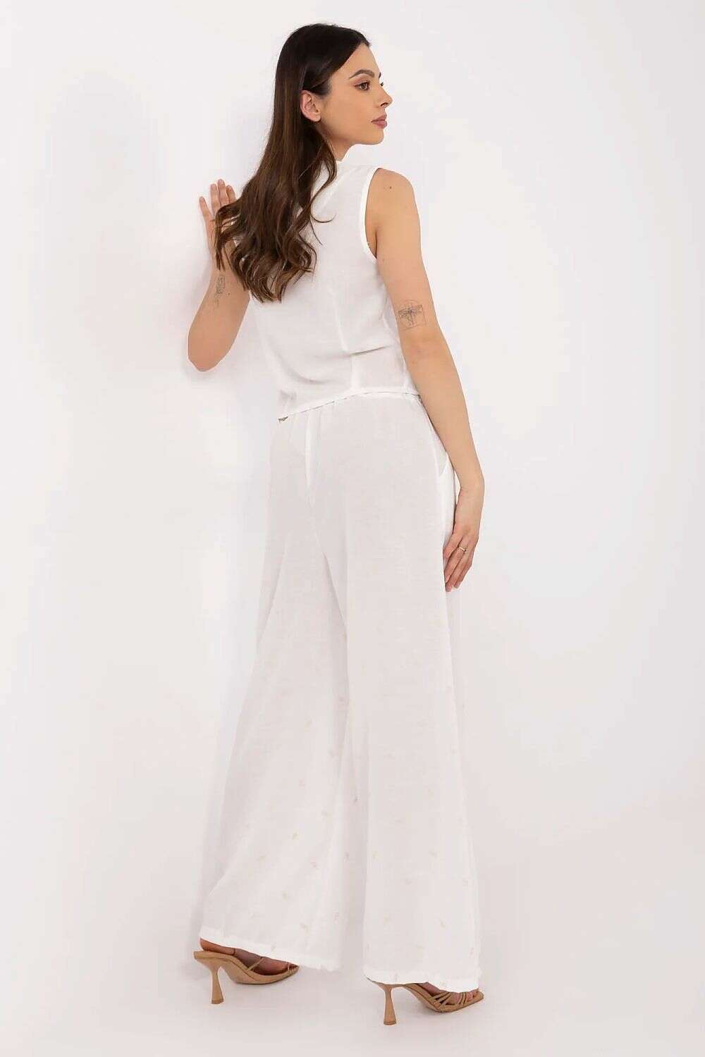 Elevate your everyday with Set model 212298 — a stylish women's two-piece that blends casual ease with professional polish. This outfit pairs a fitted sleeveless vest with wide-leg trousers, creating a balanced silhouette that transitions seamlessly from workdays to weekend moments.