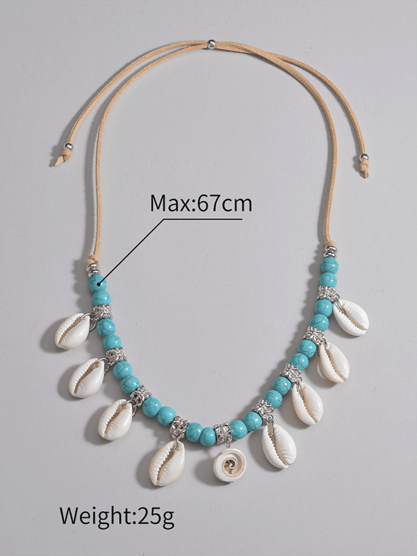 Bohemian Shell Pendant Velvet Braided Necklace – Adjustable Turquoise Beads