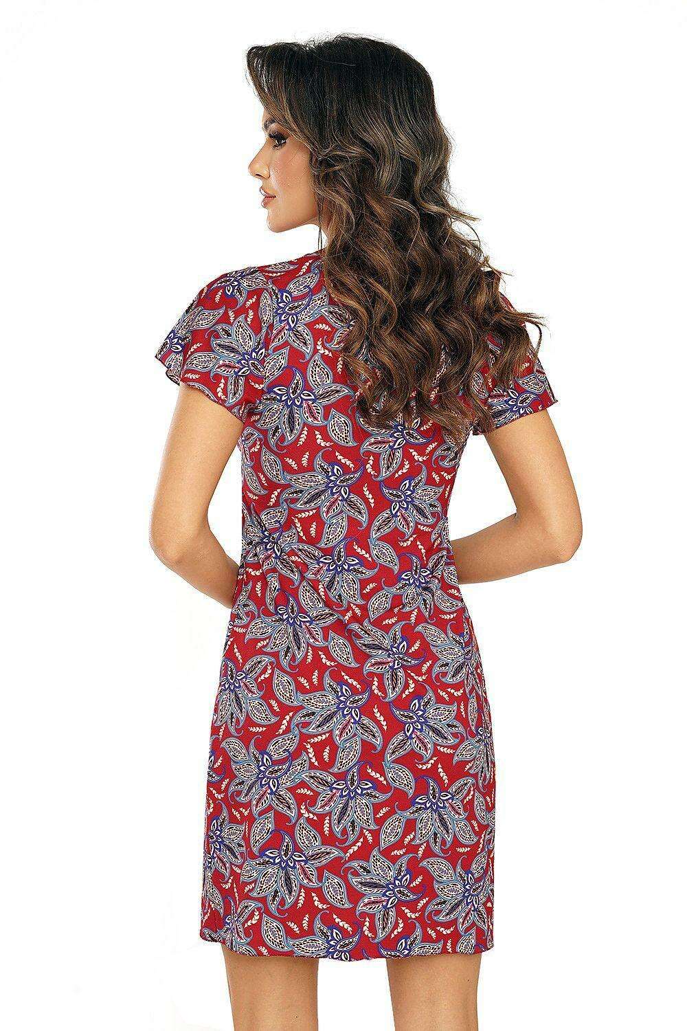 Crafted from luxurious soft viscose, this nightshirt radiates sophistication with its rich burgundy color, perfectly contrasted by intricate blue embellishments. This striking combination ensures that you will turn heads, whether you're lounging at home or drifting off to sleep.