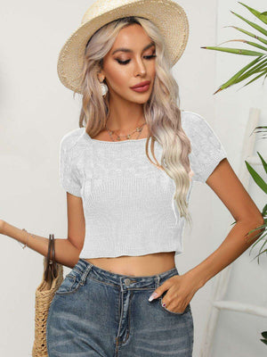 Chic Cropped Cable-Knit Square Neck Sweater with Short Sleeves
