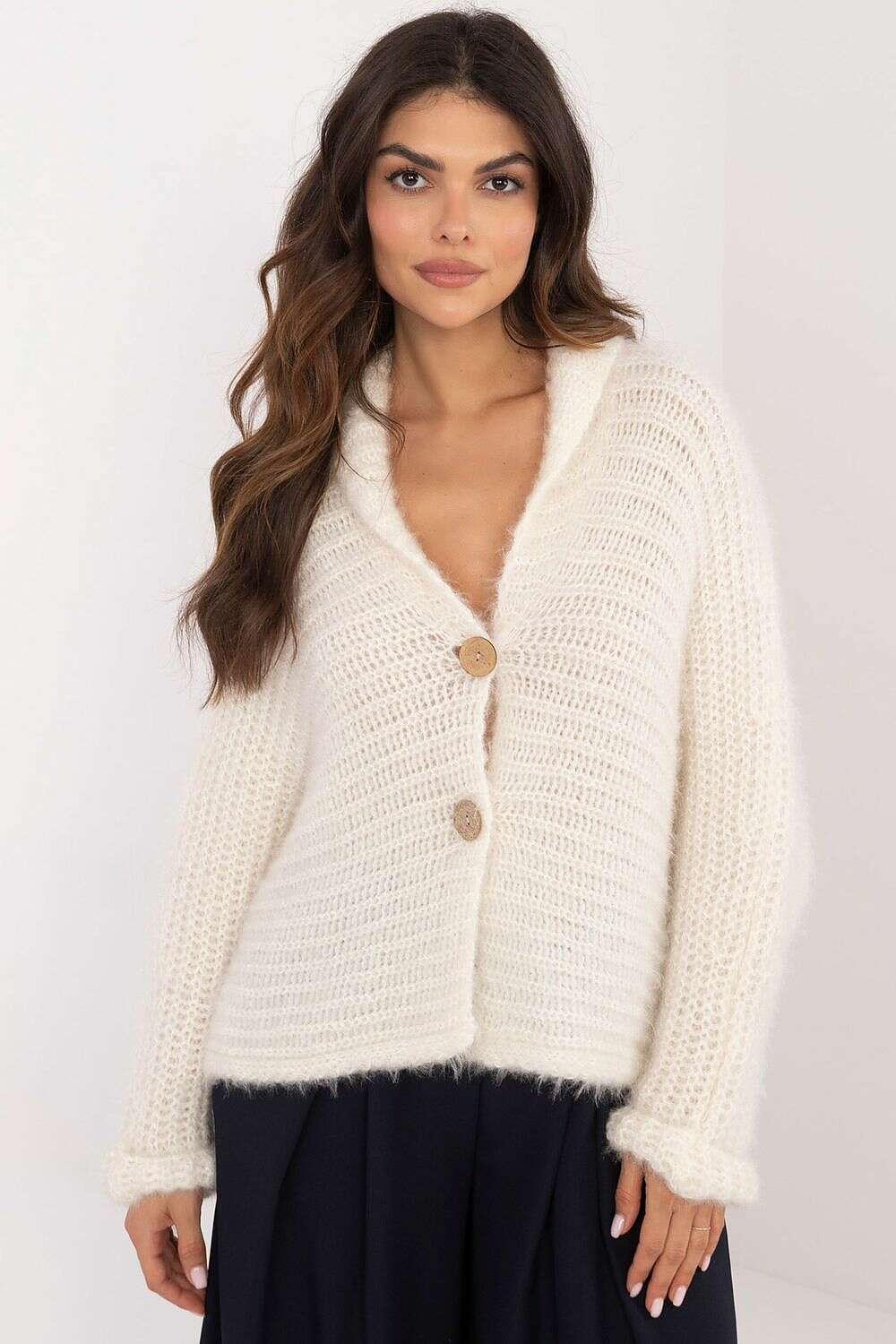 Women's sweater made of soft and pleasant to the touch blend of polyamide and acrylic that provides comfort. The material is durable and resistant to mossing. Perfect for everyday, work and many other occasions. This versatile sweater will become a staple of your closet. The heart neckline adds a chic touch and makes the sweater perfect for both everyday and more formal outfits. Buttons allow you to easily adjust the depth of the neckline. Perfect for everyday, work and many other occasions. This versatile sweater will become a staple of your closet.