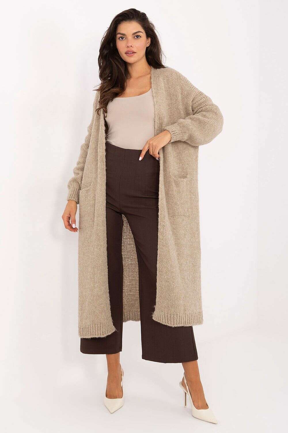 Long women's cardigan in a casual style, perfect for everyday wear and for work. Made of a soft and pleasant to the touch blend of polyacrylic, polyamide, wool and viscose, it provides comfort throughout the day. A model without fastening, knee-length, with long sleeves and practical slip pockets, combines elegance with functionality. The smooth texture of the material makes it easy to combine the cardigan with various stylizations, creating comfortable and stylish outfits.