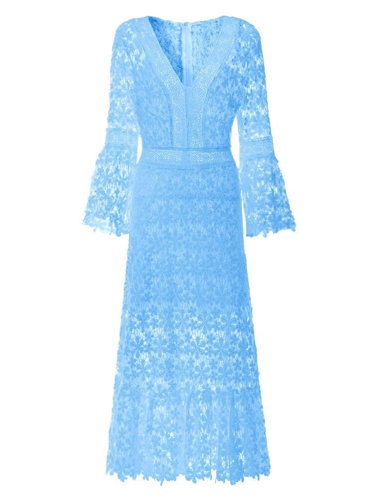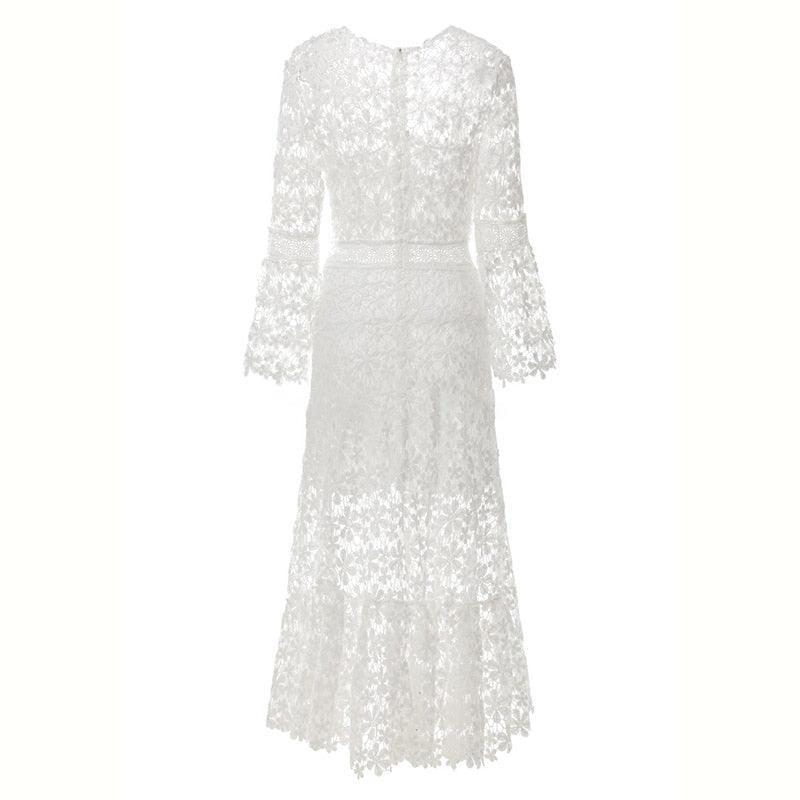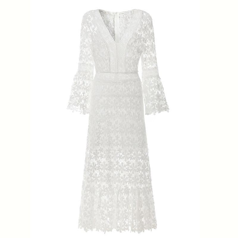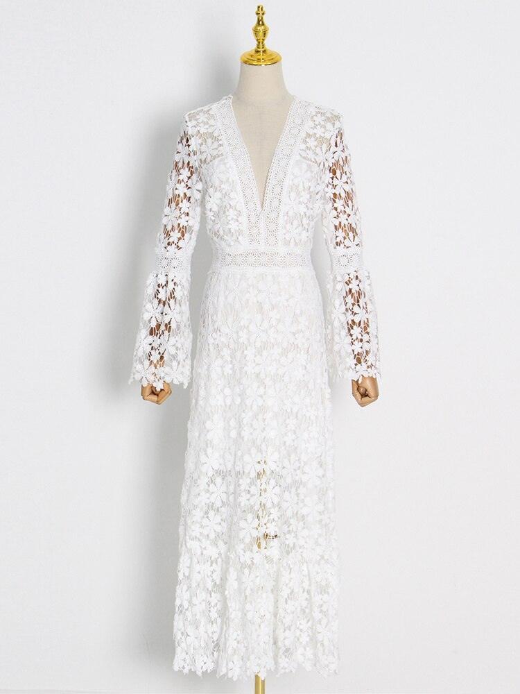 Whether you're attending a garden party, a romantic dinner date, or a casual brunch with friends, this dress is designed to turn heads and elevate your style. Indulge in elegance and make a statement with our Chic V-Neck Flare Sleeve White Pullover Dress.