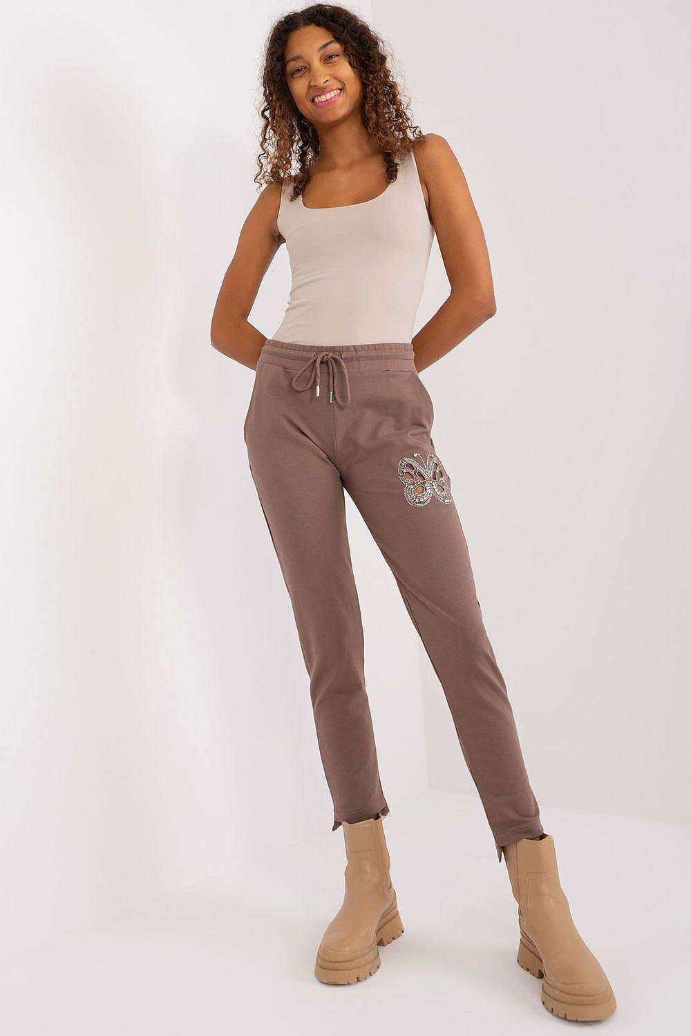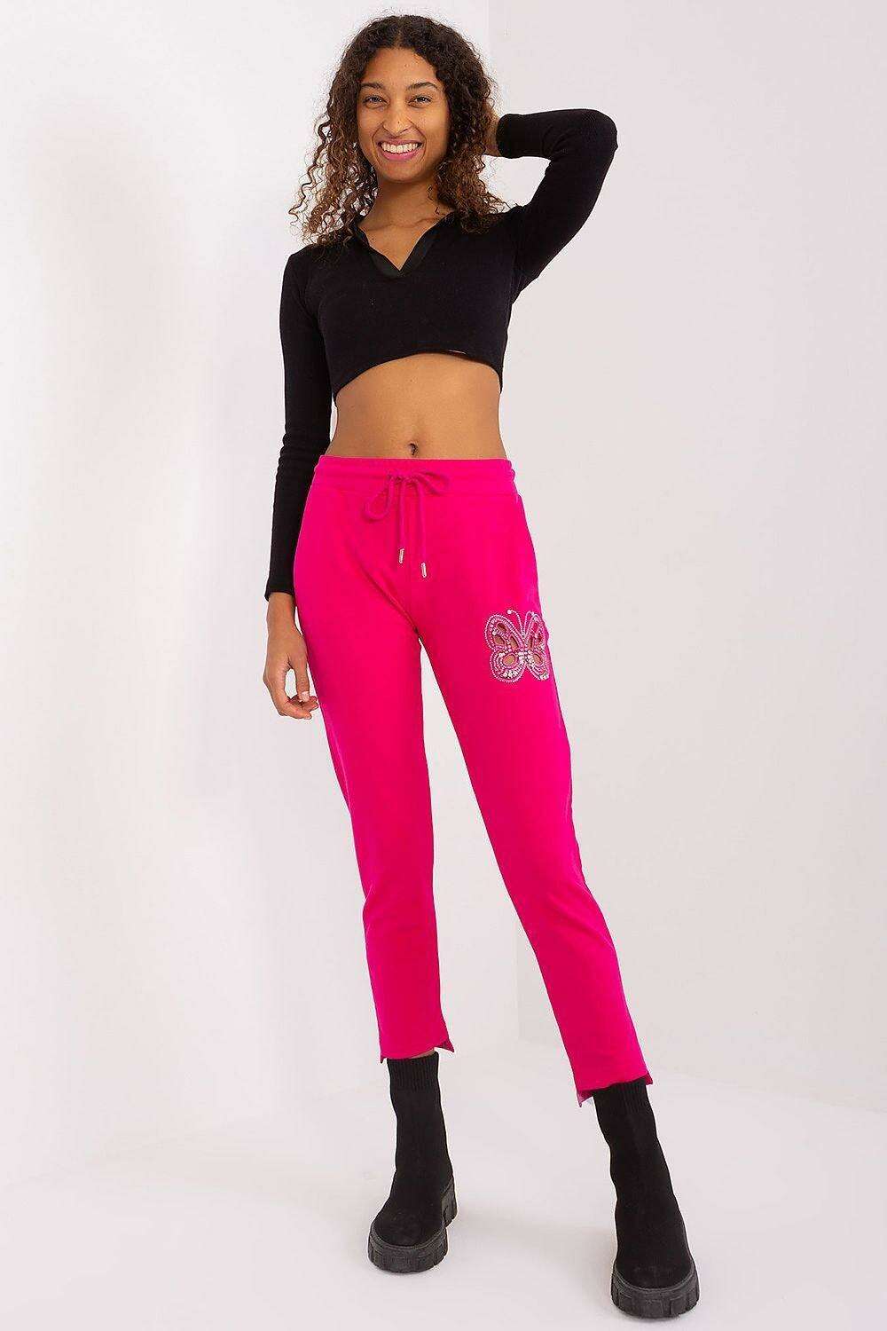 - Unique Detail: A delicate butterfly embellishment crafted from rhinestones and zircons adds a subtle sparkle, giving these joggers a distinct character that stands out.
