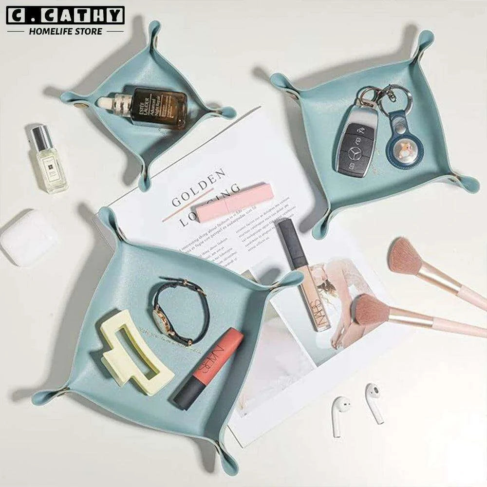 Order now and experience a clutter-free and sophisticated storage solution with our Chic Faux Leather Folding Valet Tray!