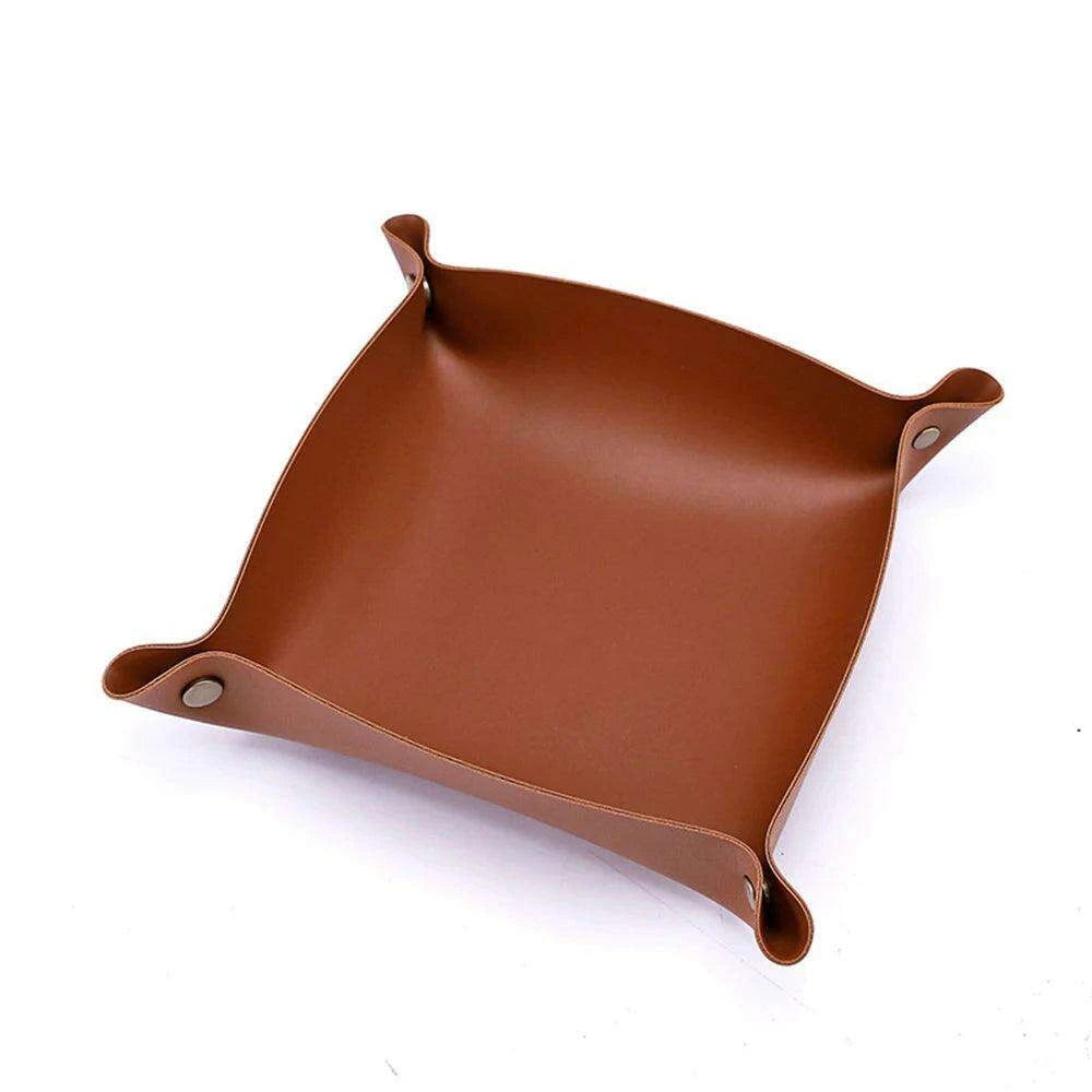 Chic Faux Leather Folding Valet Tray - Elegant Organizer for Home and Office