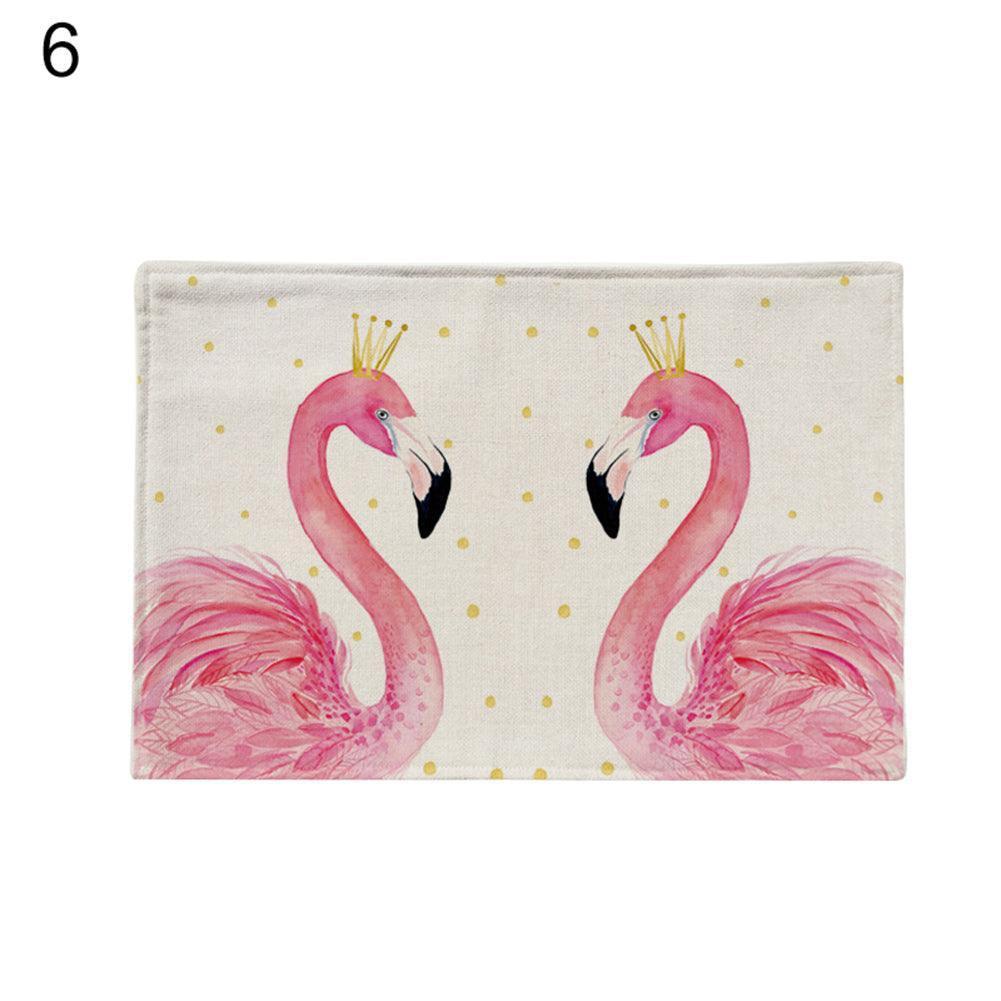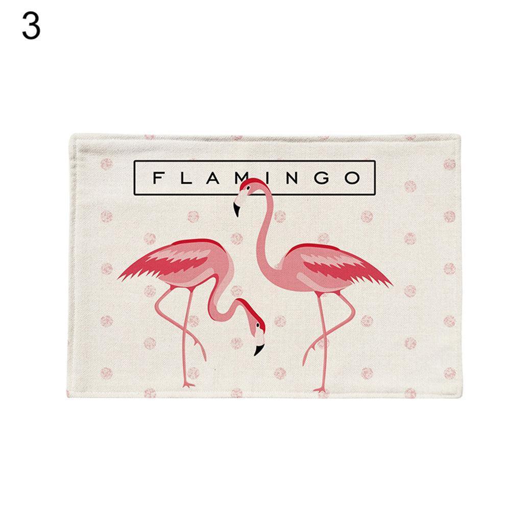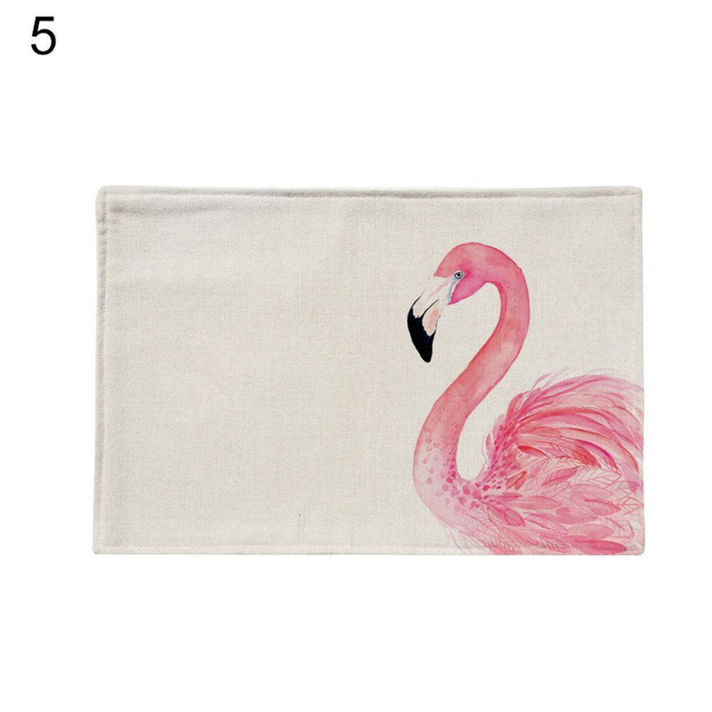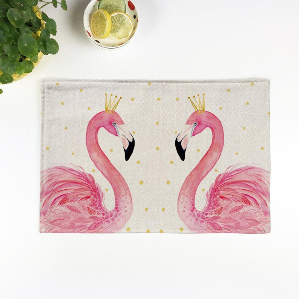 Flamingo Pattern Linen Kitchen Table Mat for Stylish Heat Protection