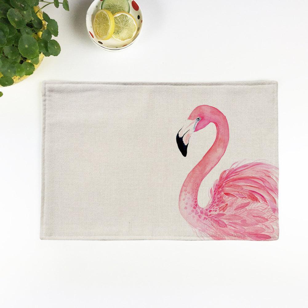 Chic Flamingo-Print Linen Table Mat for Heat Protection and Style..
