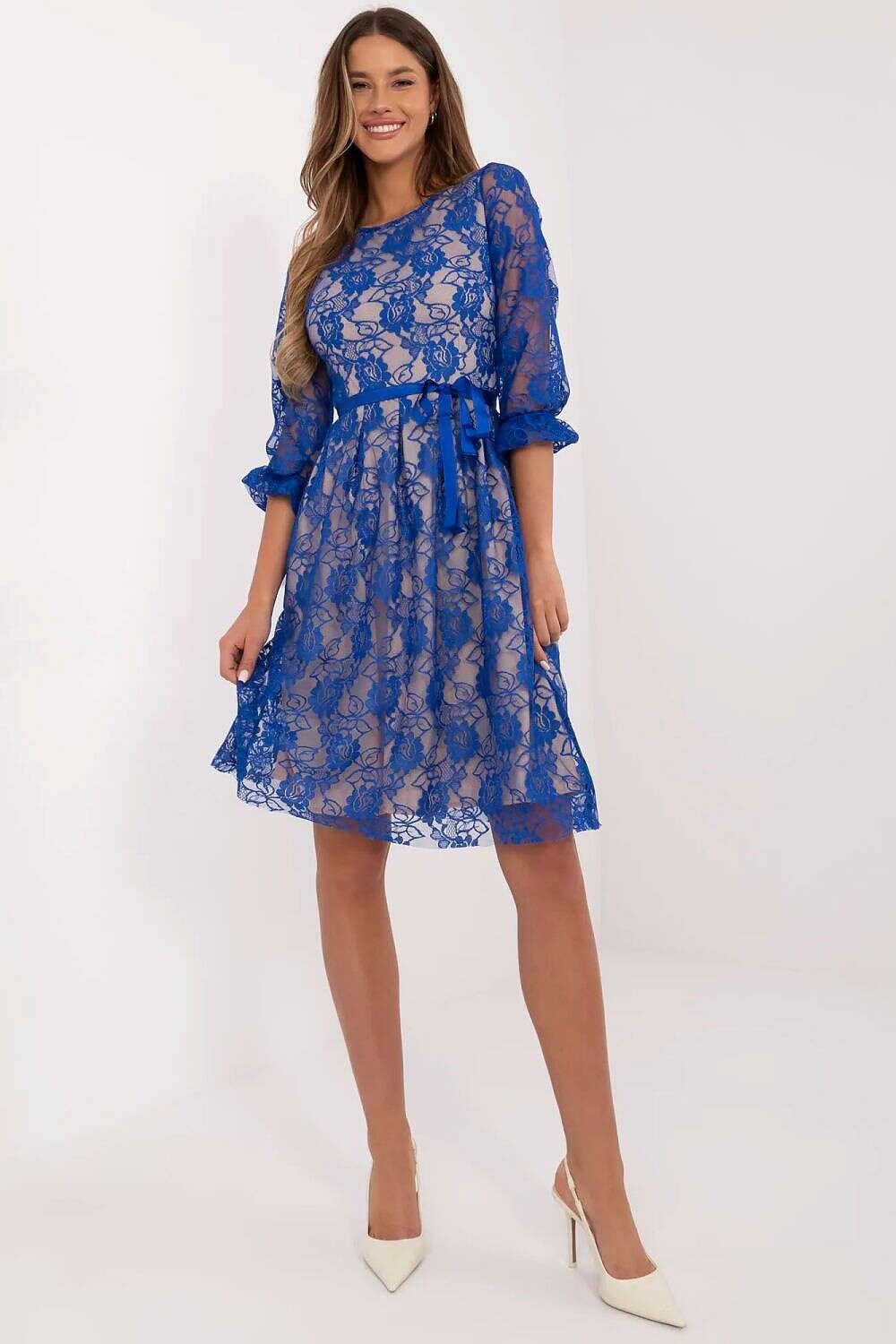 Elevate your look with the Elegant Lace Evening Gown with Waist Tie and make a lasting impression at your next event.