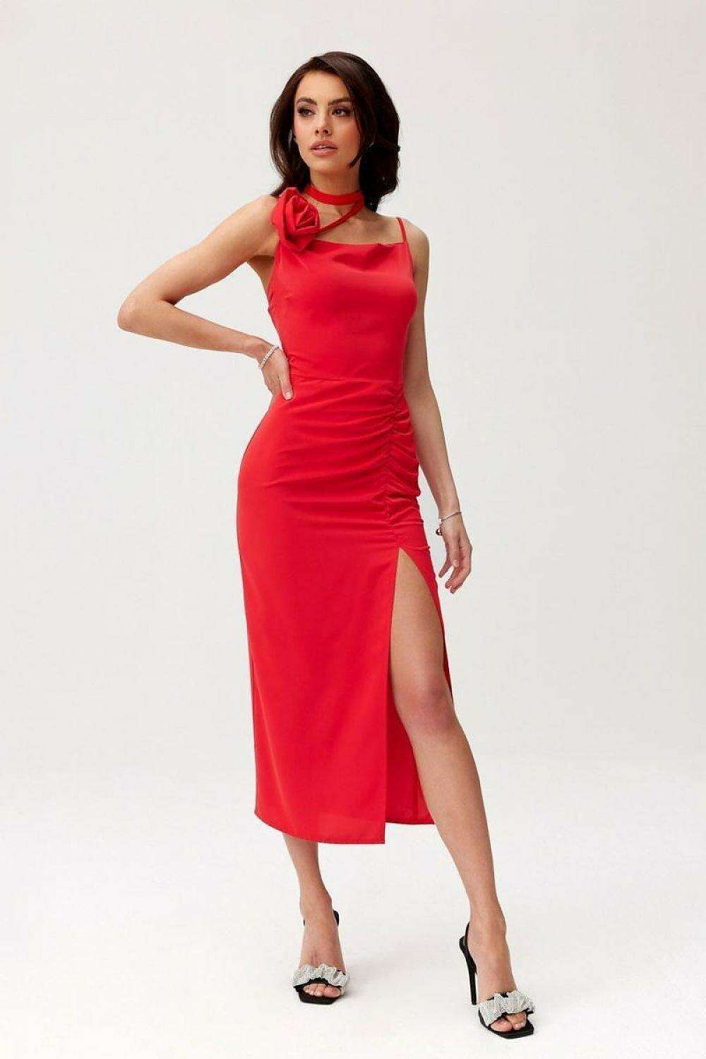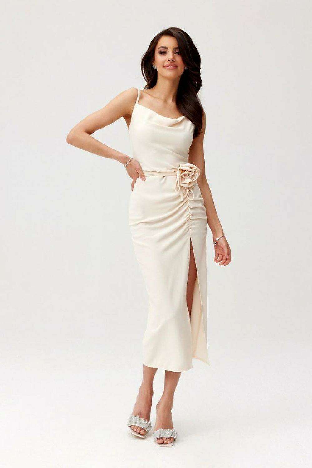 Elegant Maribel Midi Cocktail Dress with Decorative Rose Detail by Roco Fashion
