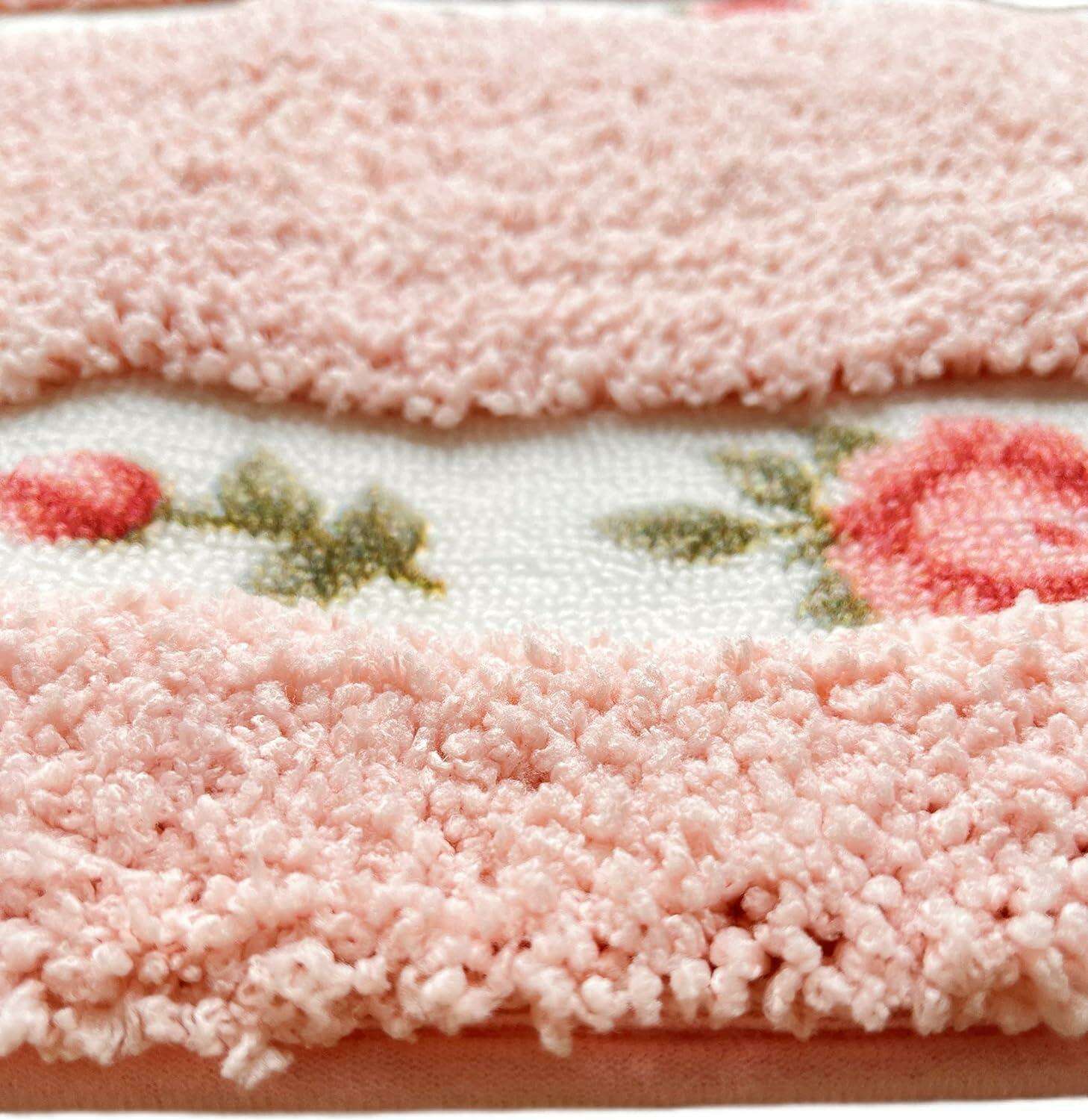 Chic Pink Rose Oval Rug Set - 2 Elegant Mats for Stylish Home Decor