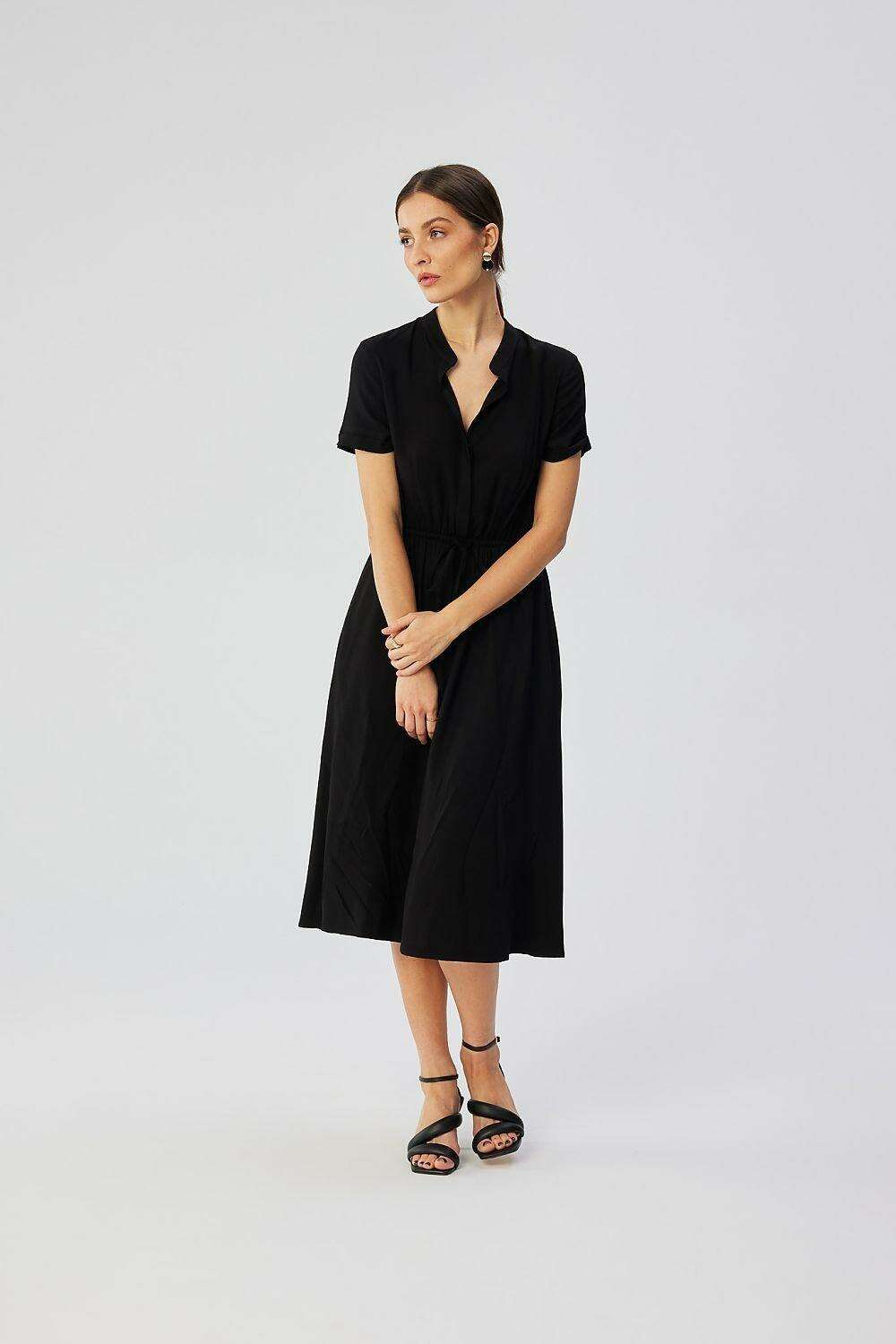 Elevate your wardrobe with the Elegant Viscose Day Dress, a beautiful fusion of style, comfort, and local craftsmanship, proudly made in Poland. This stunning dress is crafted from 100% premium viscose fabric, providing a luxuriously soft and delicate feel against your skin.