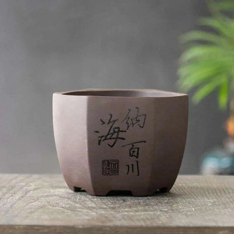Elegant Polygonal Purple Clay Flower Pot - Chic Chinese Style Home Decor Vase