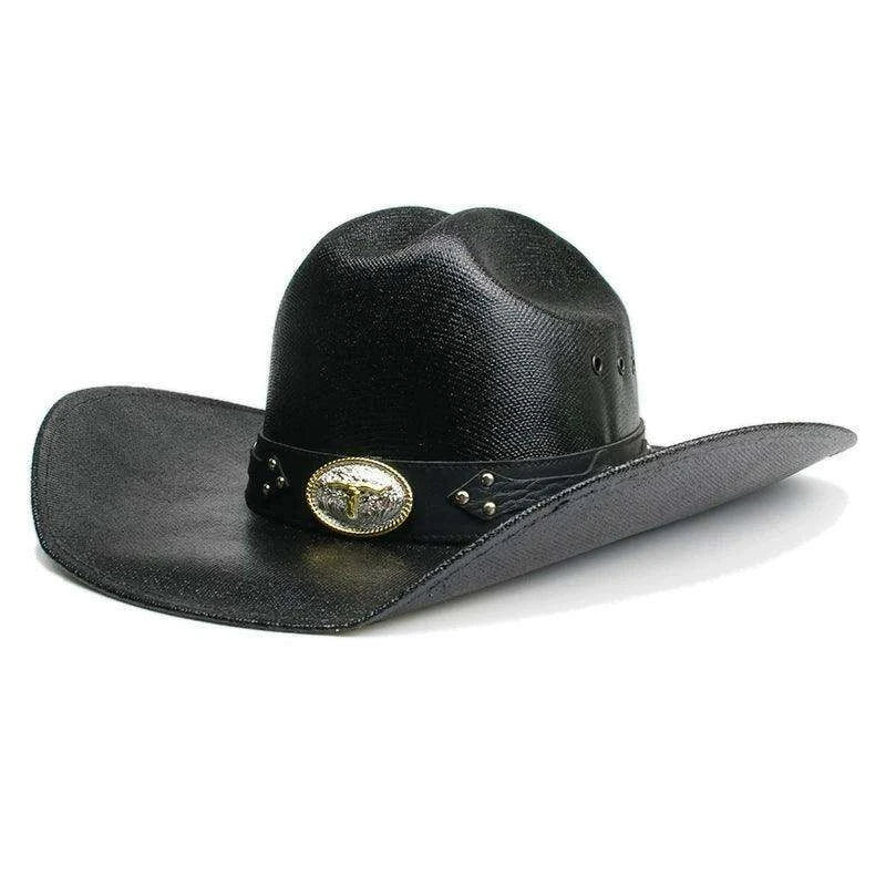 Classic Waterproof Cowboy Hat with Unique Cowhead Detail - Trendy Straw Sun Protection Accessory