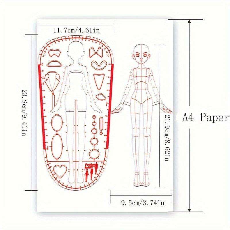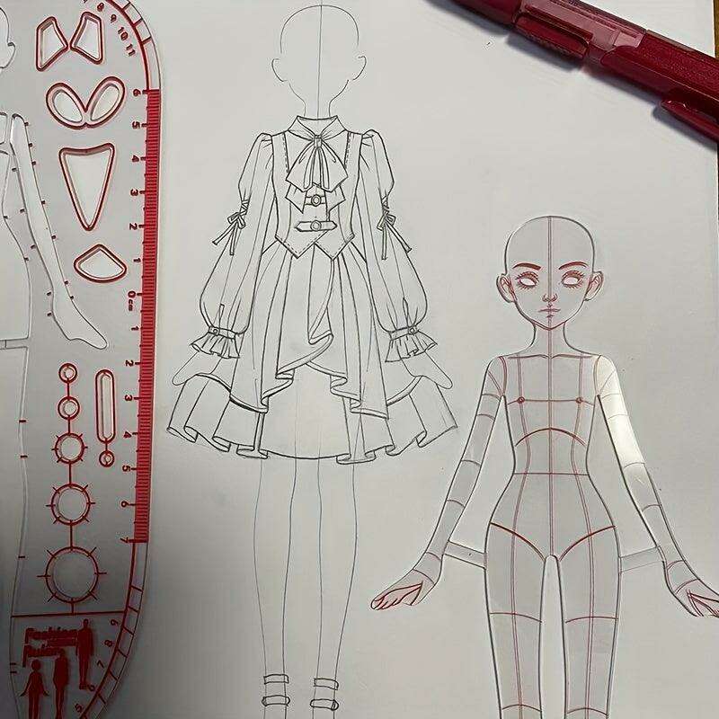 Clear Fashion Illustration Ruler Set with Dress Form Templates for Student Design and BJD Doll Outfit Sketching