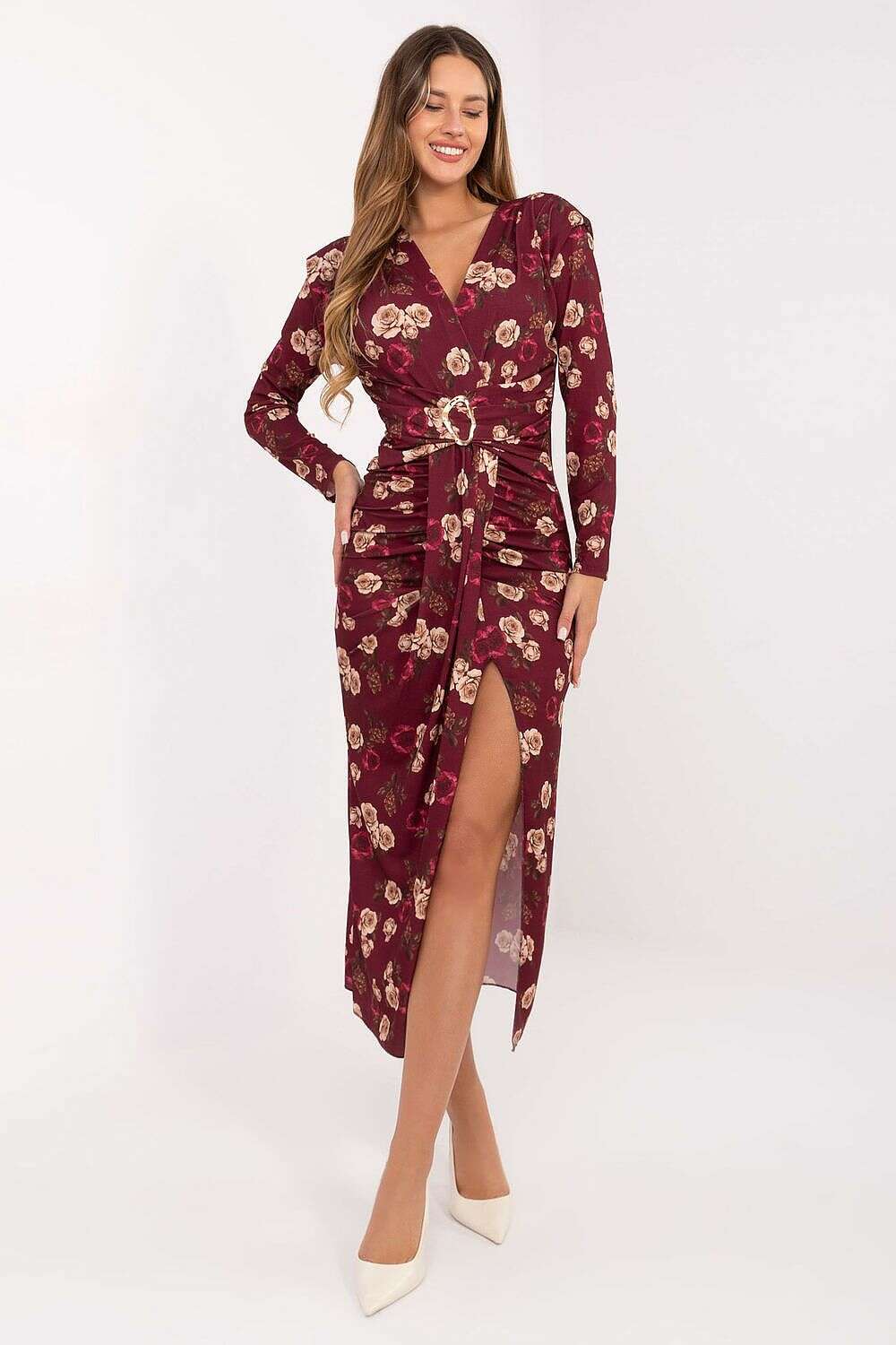 Discover the Elegant Midi Pencil Cocktail Dress Model 219194 With Slit—a stylish statement for any special occasion. Crafted from a pleasant-to-the-touch blend of viscose and polyester (70% viscose, 30% polyester), it beautifully hugs the silhouette, emphasizing feminine shapes with refined ease. The midi length and long sleeves deliver classic sophistication, while the striking front slit reaching the thigh adds a subtle, sensual edge.