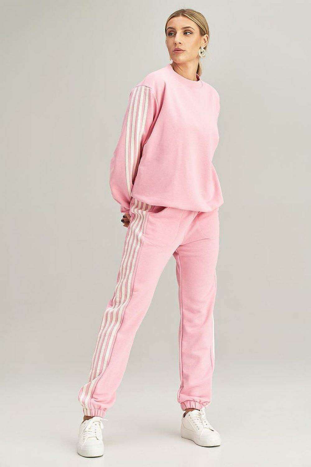 Cozy Striped Tracksuit Set with Coordinating Sweatshirt and Pants - Très Elite