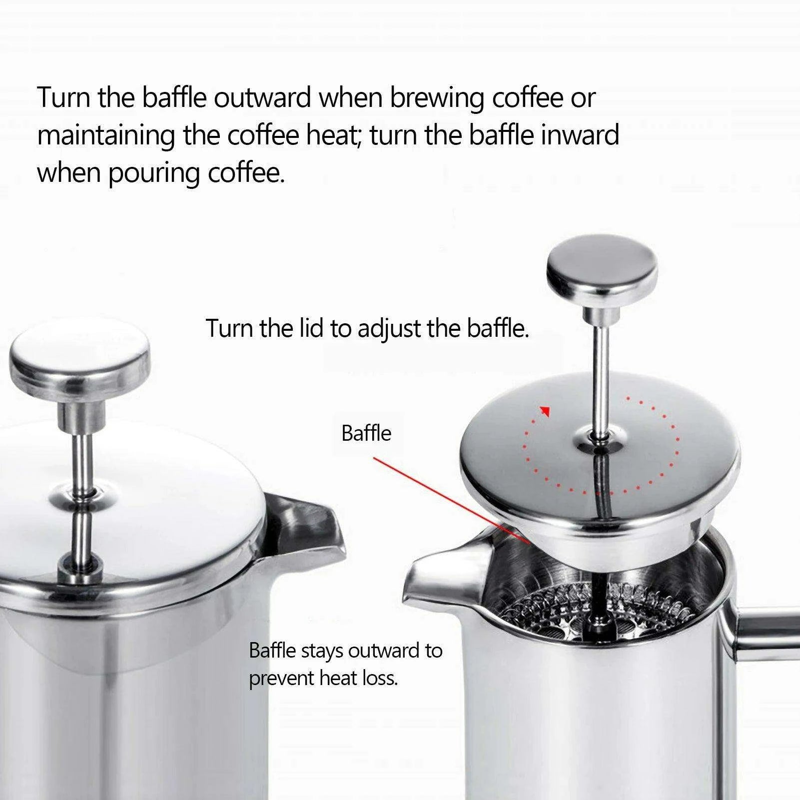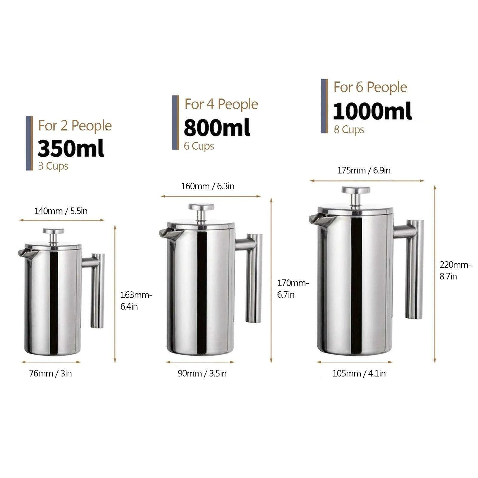 Premium Double-Walled Stainless Steel French Press - Available in 350ml, 800ml, and 1000ml Sizes