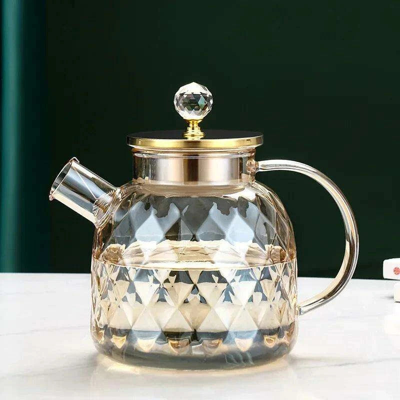 Introducing the Elegant 1.8L Diamond Pattern Glass Kettle for Juices, Milk, Coffee, and Tea - Stylish Drinkware Set for Family Gatherings. This stunning glass kettle is not just a kitchen accessory; it’s a centerpiece that combines beauty with practicality, perfect for any family gathering. Enjoy serving your favorite beverages in style, whether it's refreshing juices, creamy milk, aromatic coffee, or soothing tea. This elegant kettle is designed for those who appreciate both functionality and aesthetics.