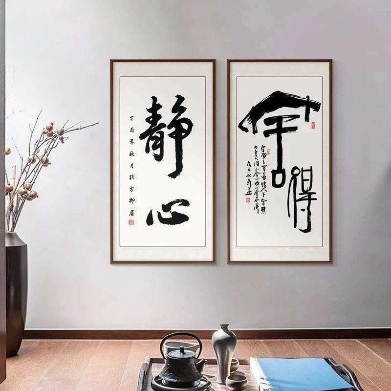 Serene Chinese Calligraphy Wall Art - Sophisticated Zen Decor for Home