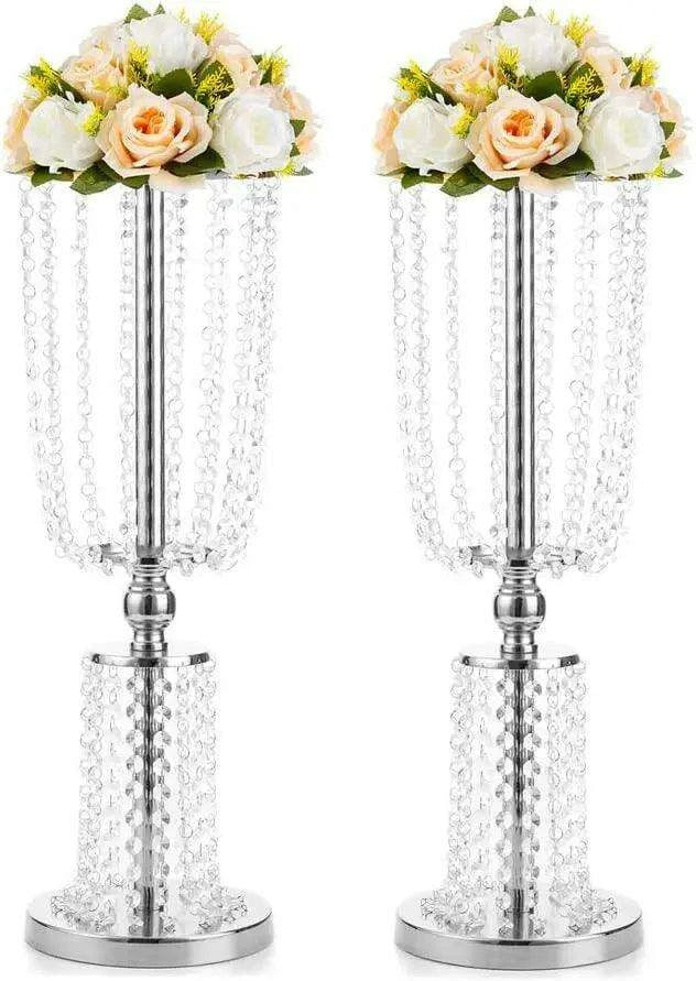 - Elegant Design: Each centerpiece stands at an impressive 23.75 inches tall, adorned with shimmering acrylic crystal drops cascading from a sophisticated silver stand.