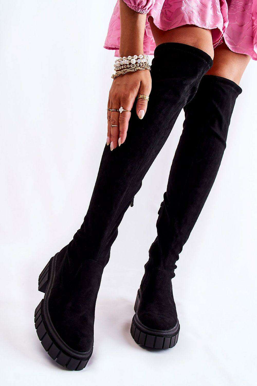 Step into the spotlight with our Elegant Eco-Suede Over-the-Knee Boots Model 173777, where style meets comfort in perfect harmony. Made from high-quality eco-suede, these thigh-high boots offer a luxurious appearance and a remarkably soft touch, ensuring a delightful wearing experience that distinguishes them from the rest.