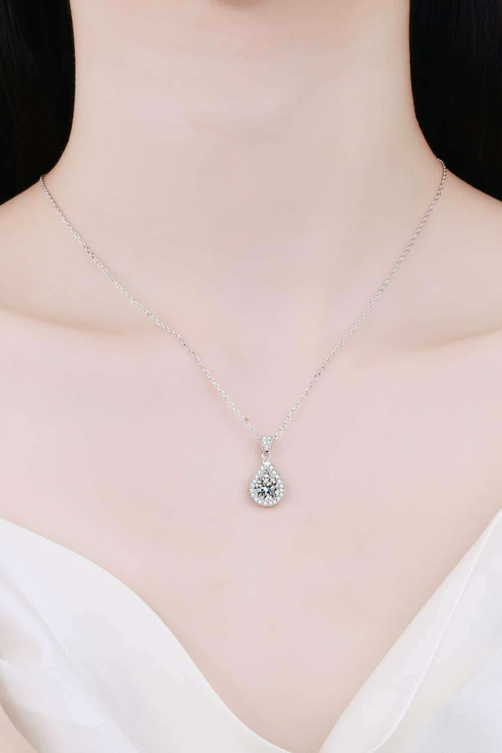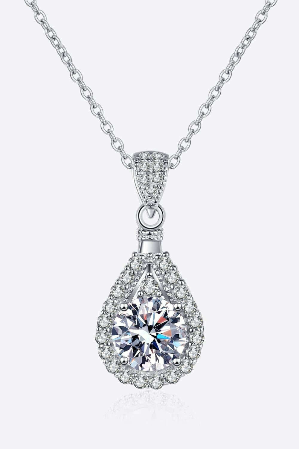 Elegant Lab-Diamond Teardrop Silver Pendant Necklace