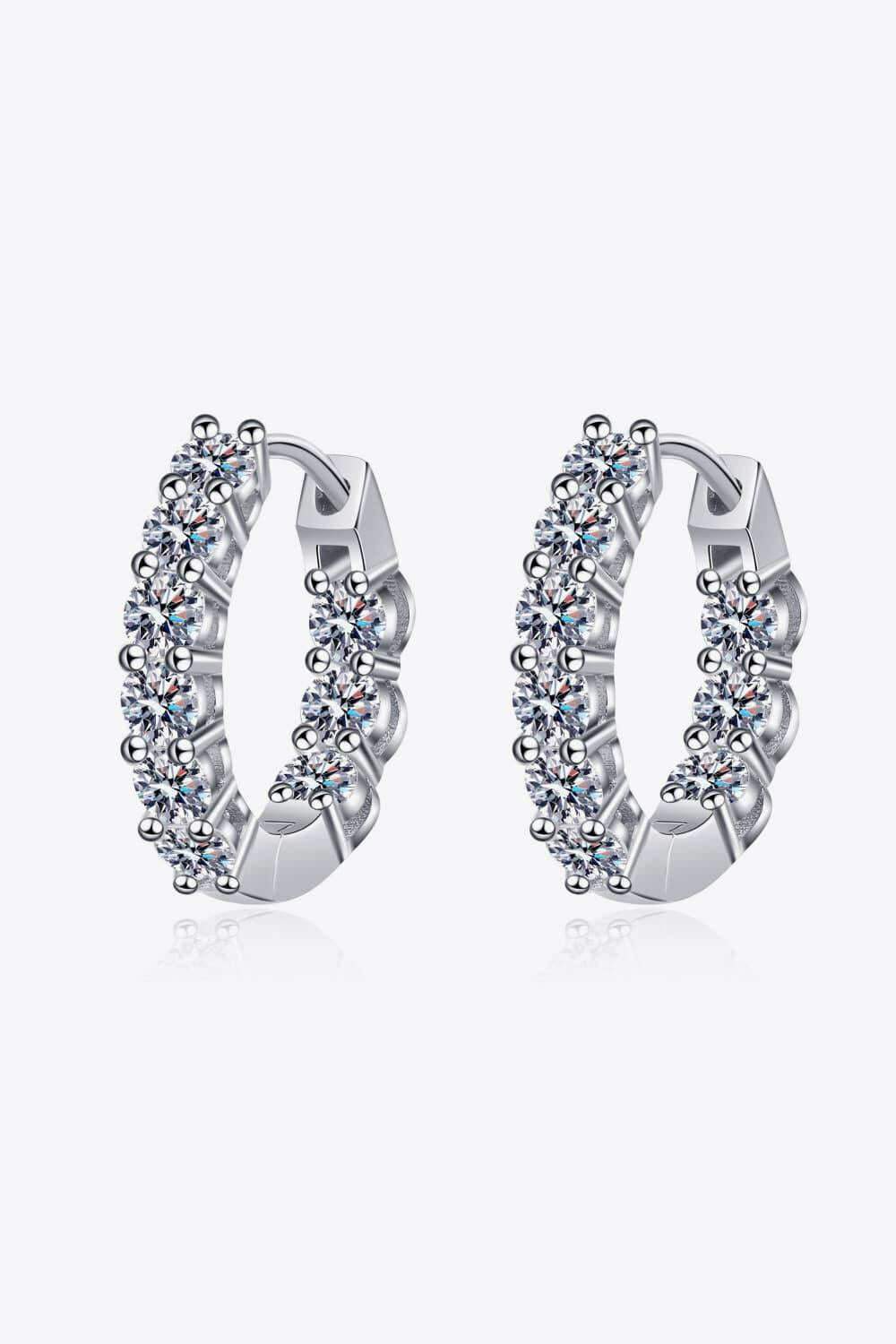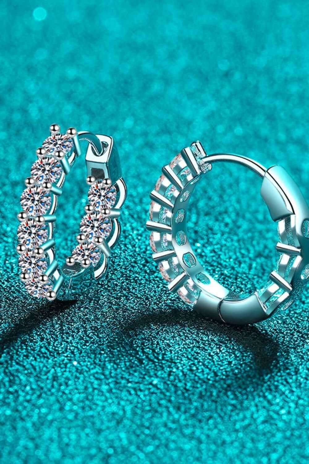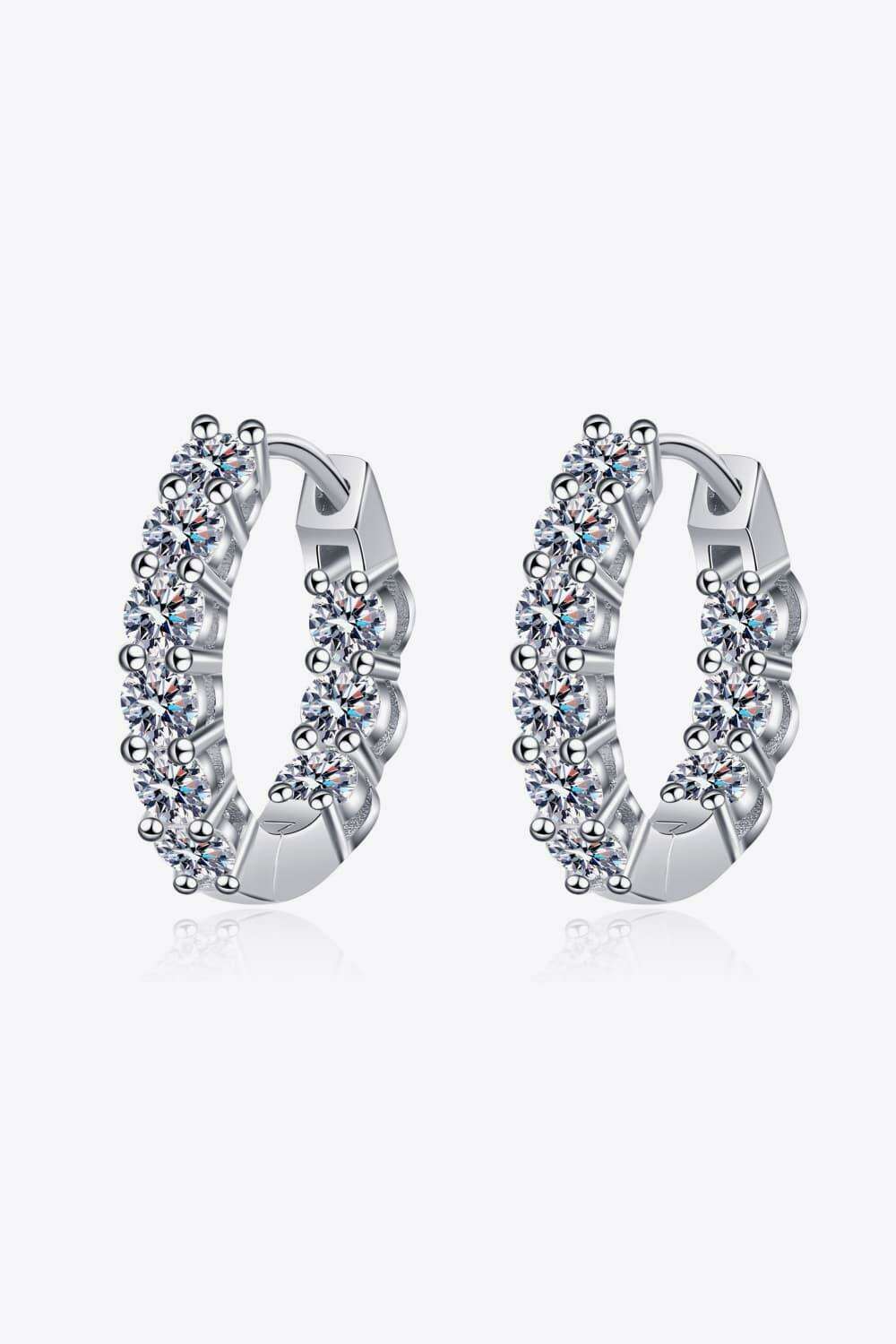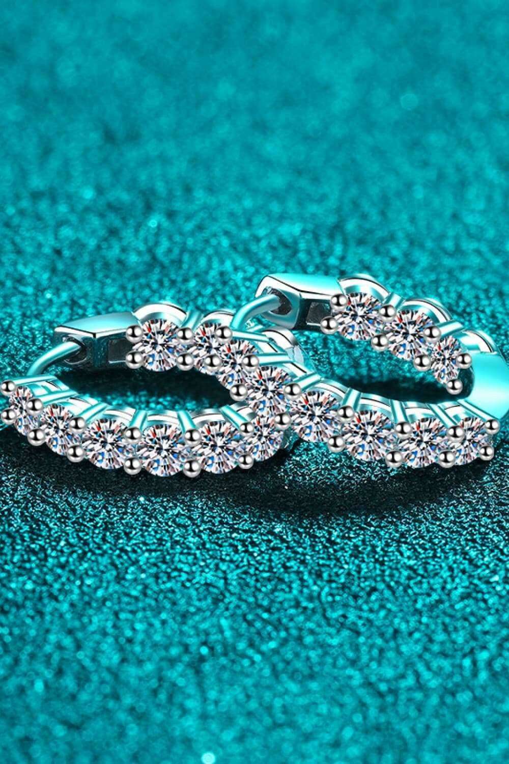 Luxe Sterling Silver Hoop Earrings with Sparkling 1.8 Carat Moissanite Stones