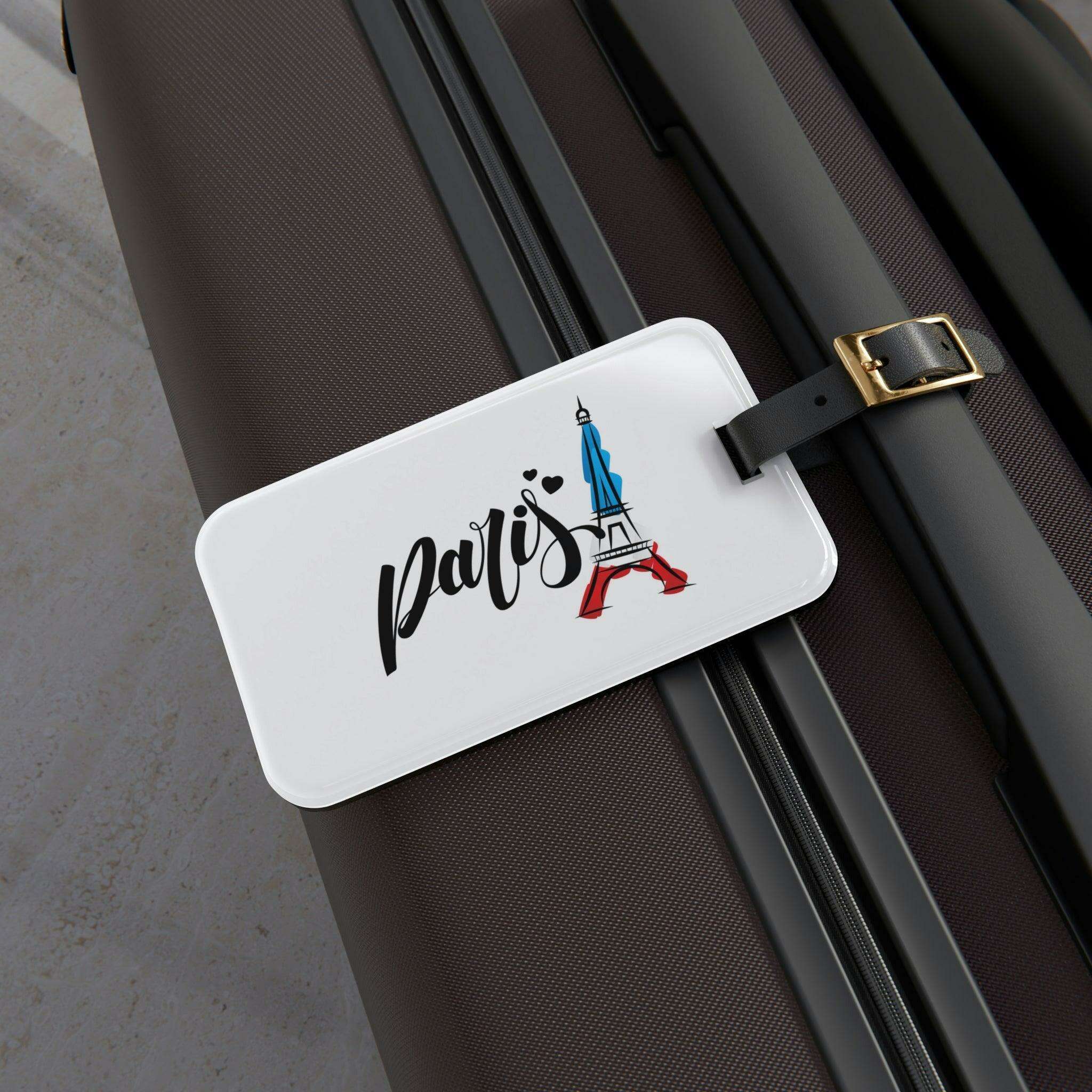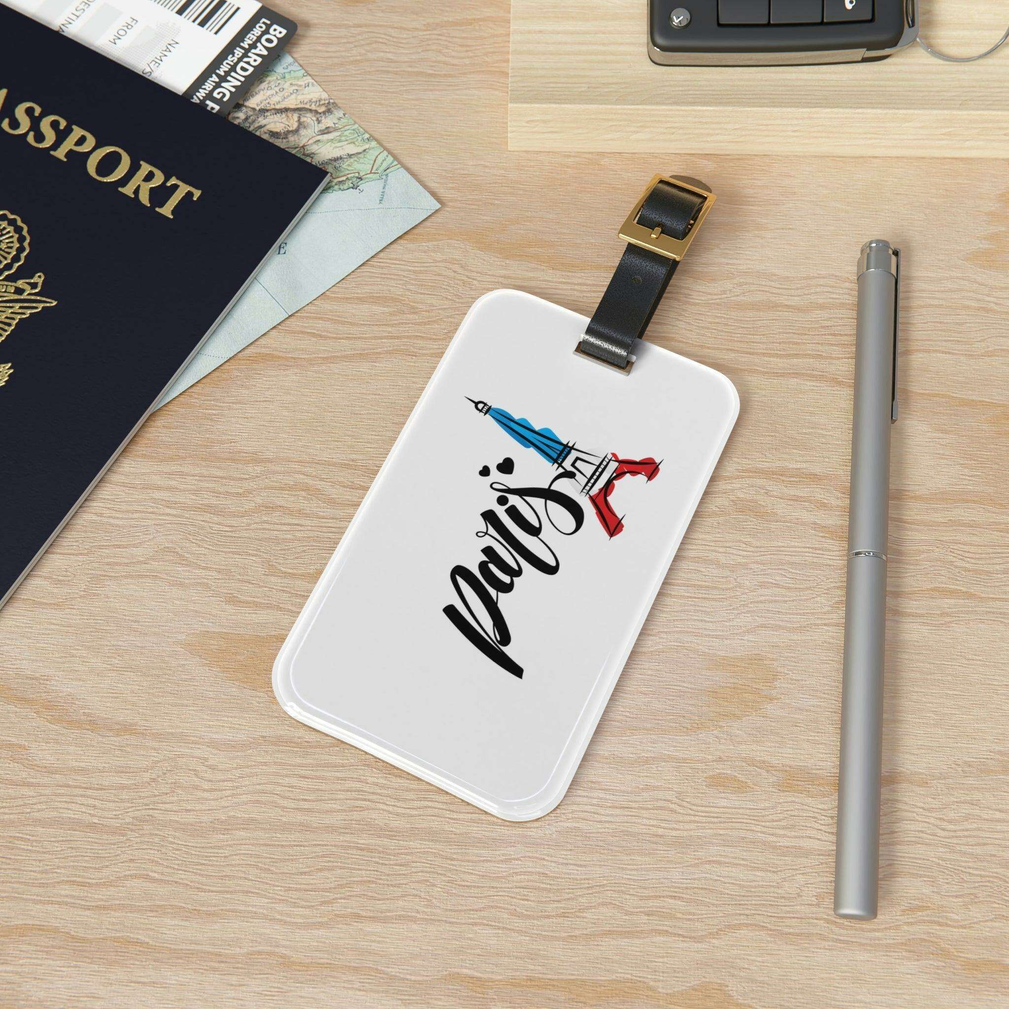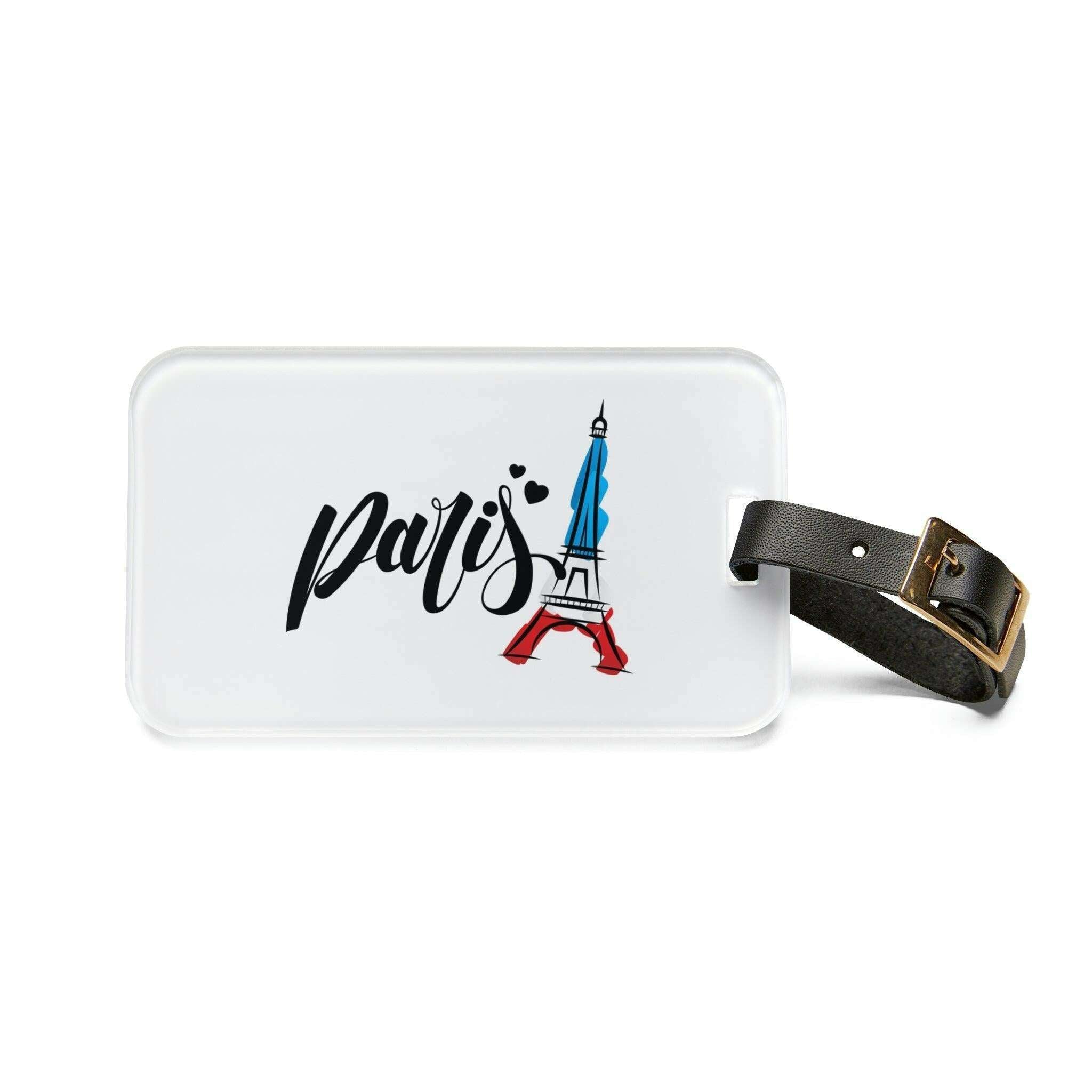 Chic Parisian Adventure: Personalized Acrylic Luggage Tag with Leather Strap