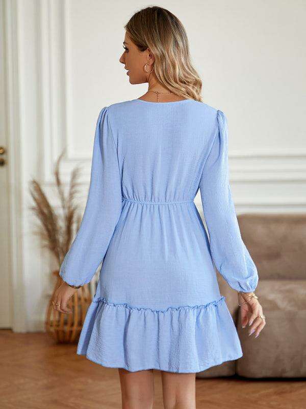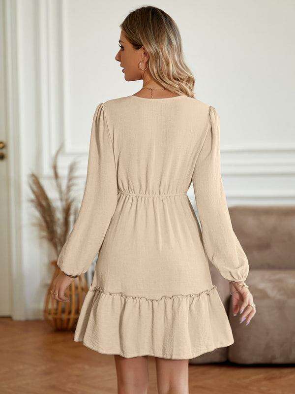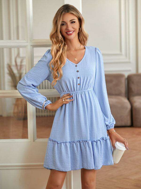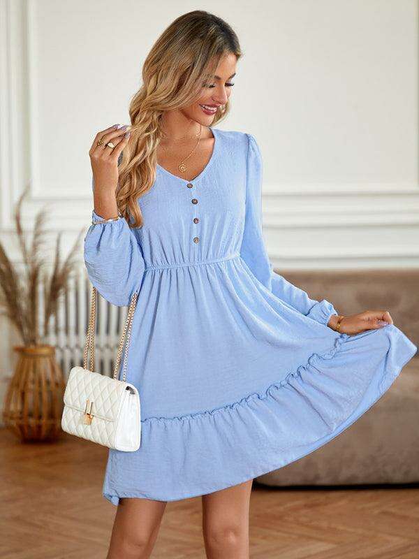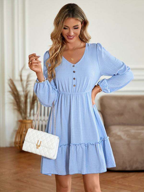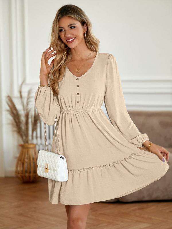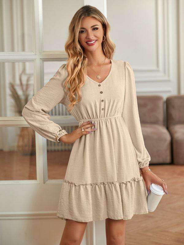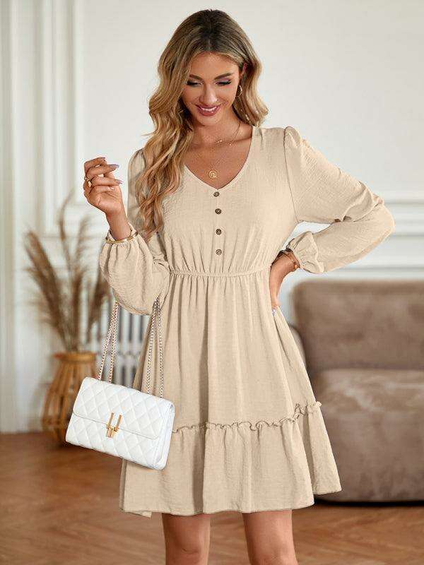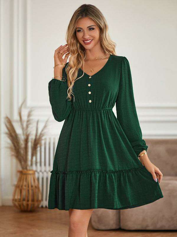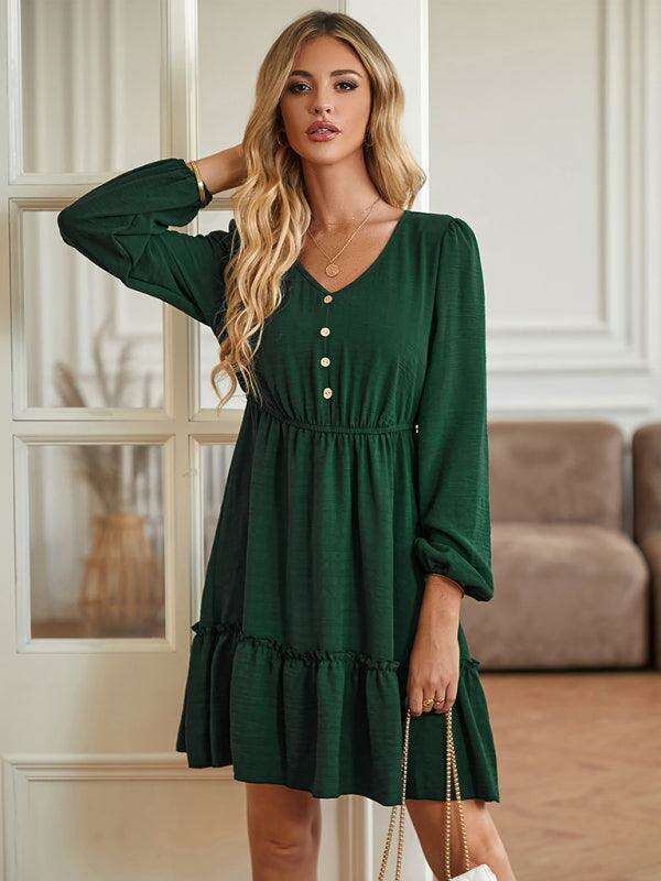 Elegant V-Neck Dress with Stylish Button Accents for Any Occasion
