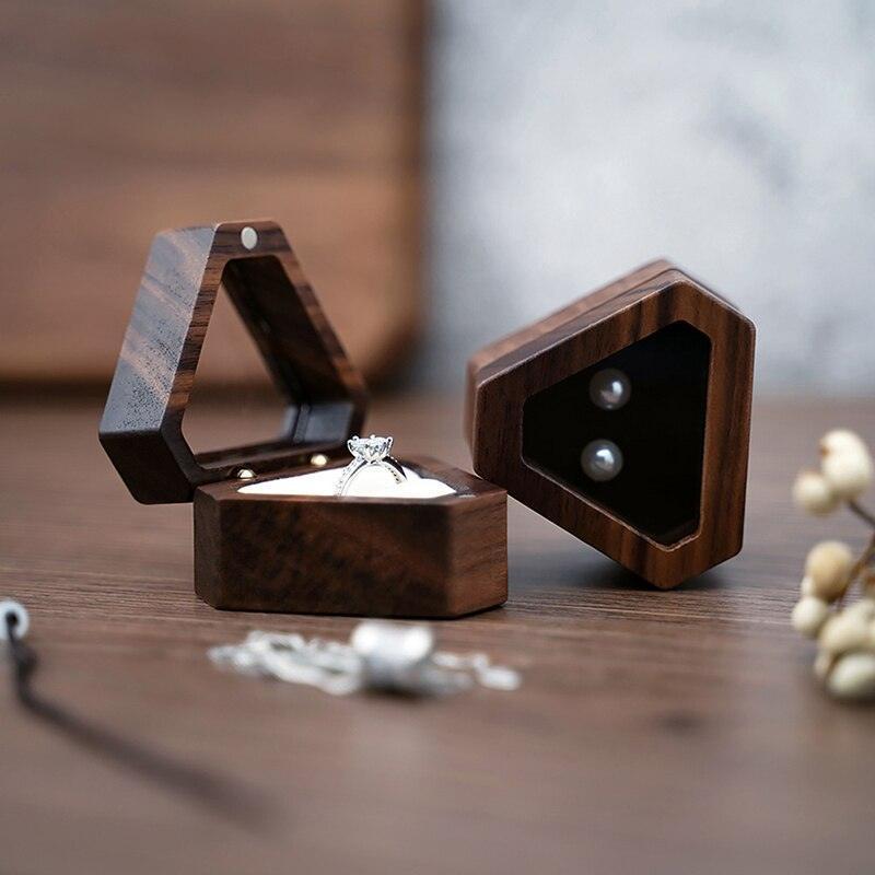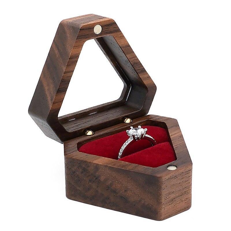 Elegant Velvet-Lined Wooden Ring Box - Ideal for Proposals and Jewelry Storage