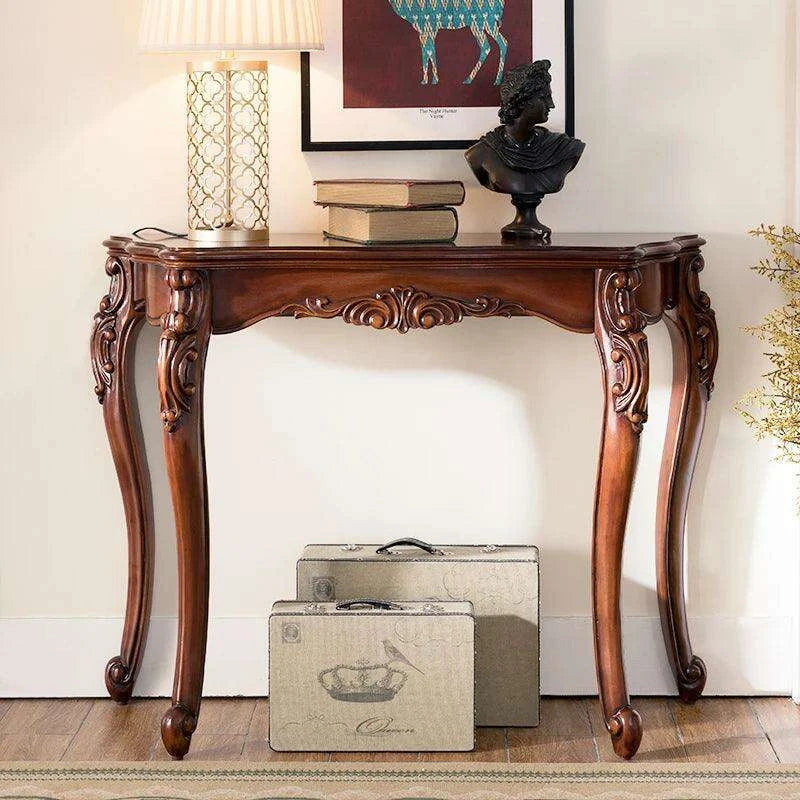 European Vintage Solid Wood Hallway Console Table - Elegant Accent with Timeless Appeal