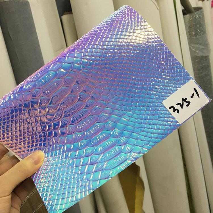 Embossed Holographic Crocodile Faux Leather Crafting Sheet - Premium DIY Material.