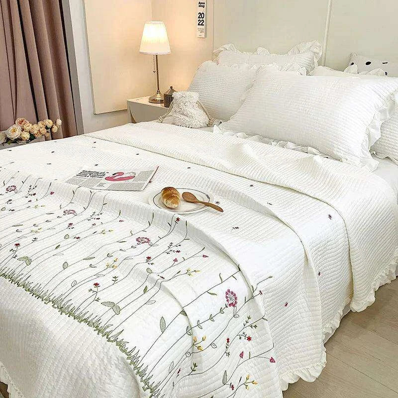 Ruffles Flowers Embroidery Summer Quilt Set
