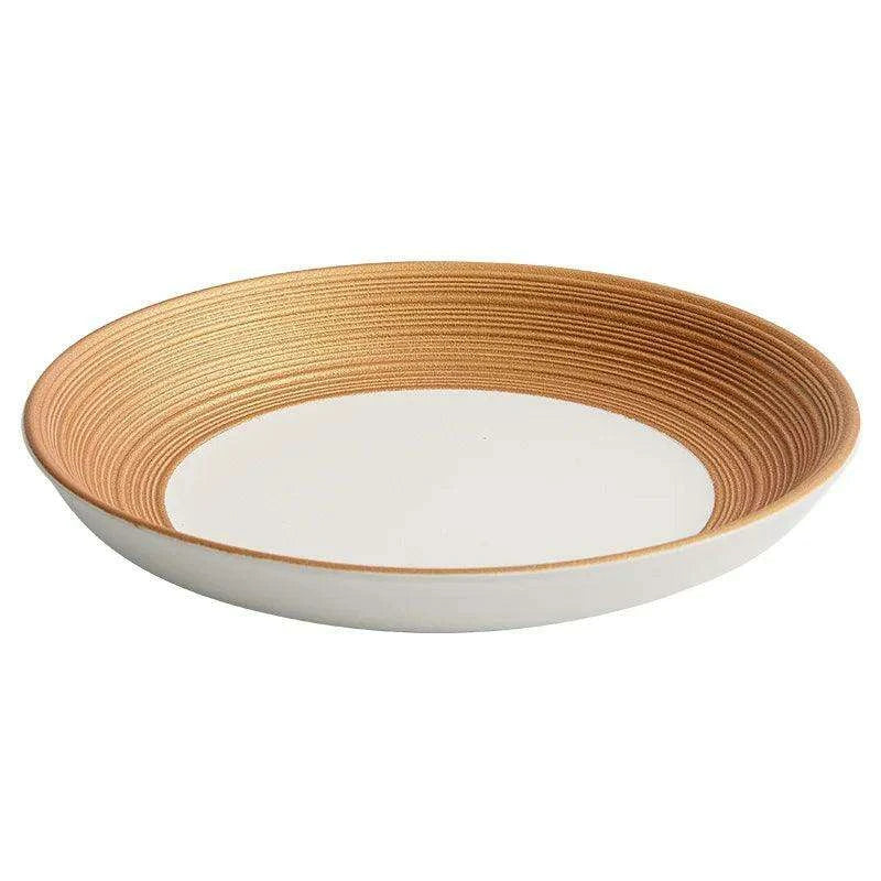 Exquisite Gold-Trimmed Ceramic Dinner Plates for Sophisticated Dining Events