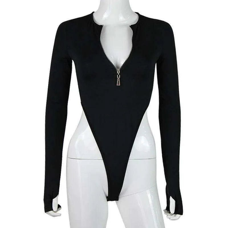 Fall & Winter Women's Fashion Bodysuit - Solid Zipper Long Sleeve Slim Fit Sexy