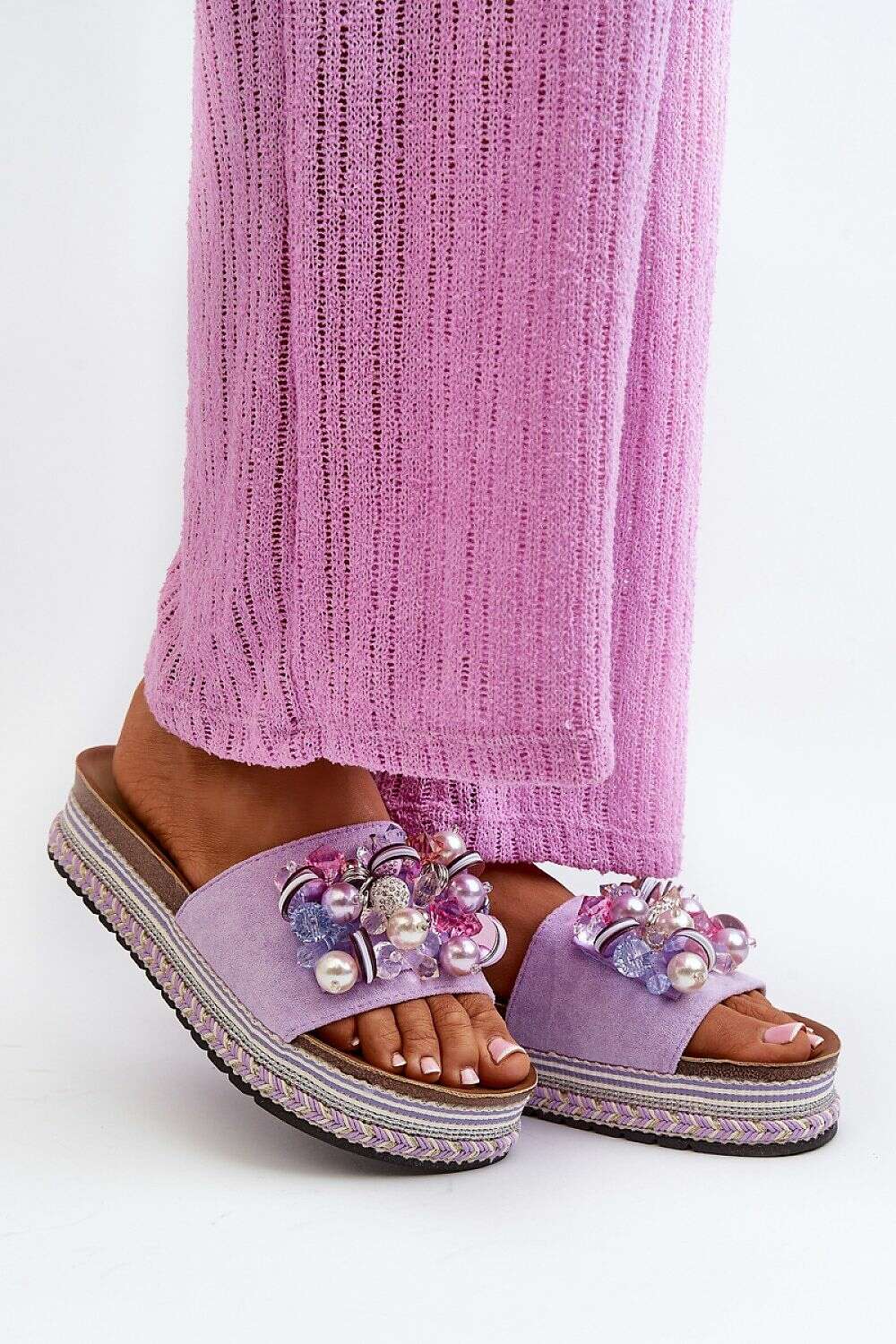 Stylish women's flip-flops from the brand S.Barski. Set on a decorated platform. On the strap numerous decorations. This model has a profiled insole, which will ensure comfort at every step. Perfect for summer dresses and pants!