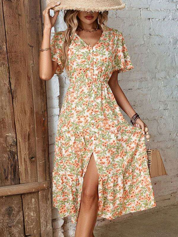 Floral Elegance Button Slit Dress - The Ultimate Spring-Summer Fashion Must-Have