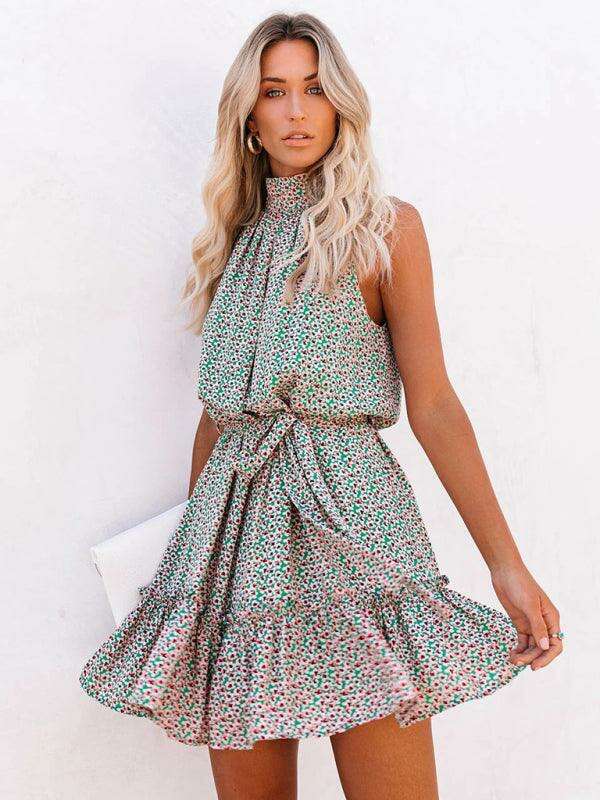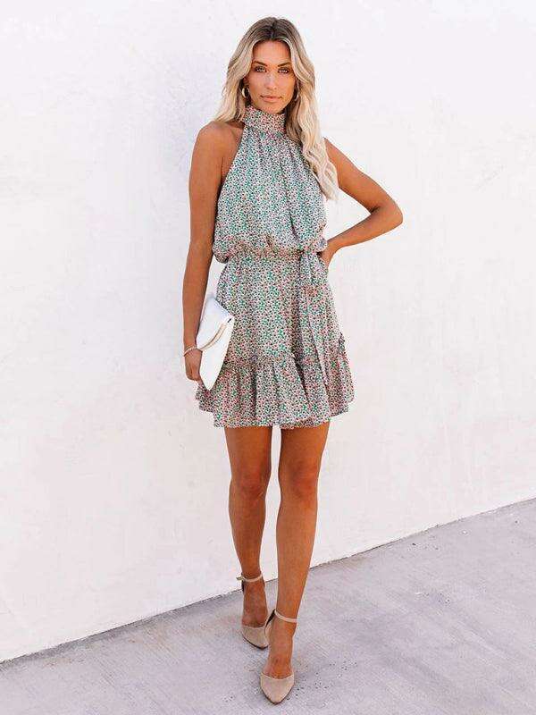 Floral Elegance Wood Ear Halter Neck Dress for Effortless Chic