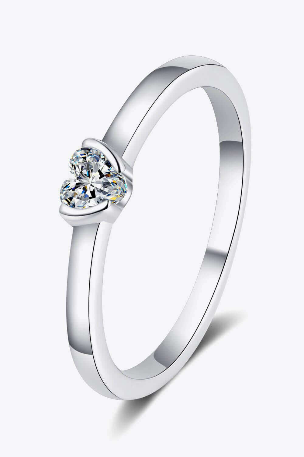 Heartfelt Elegance Lab-Diamond Ring in Platinum-Plated Sterling Silver