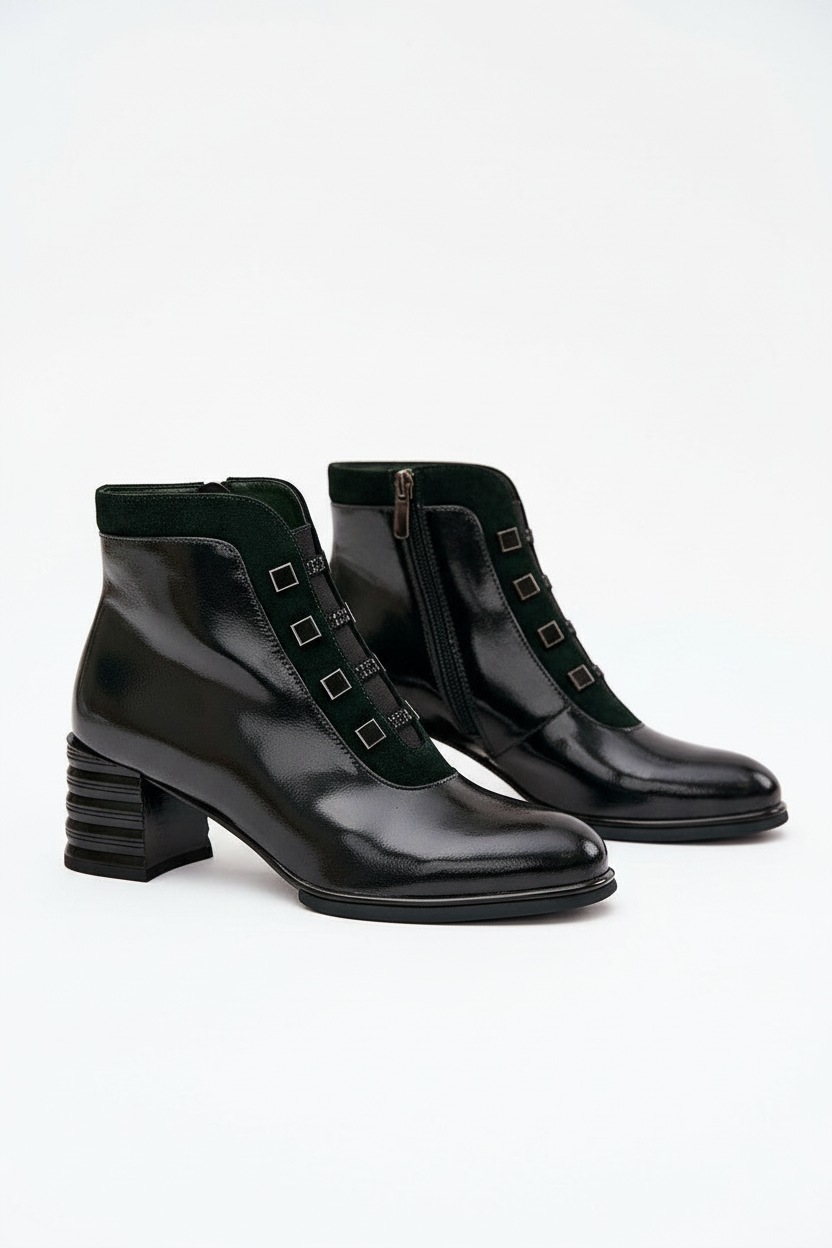 Women's Patent Leather Heeled Ankle Boots – Modern Gloss, Zip Closure