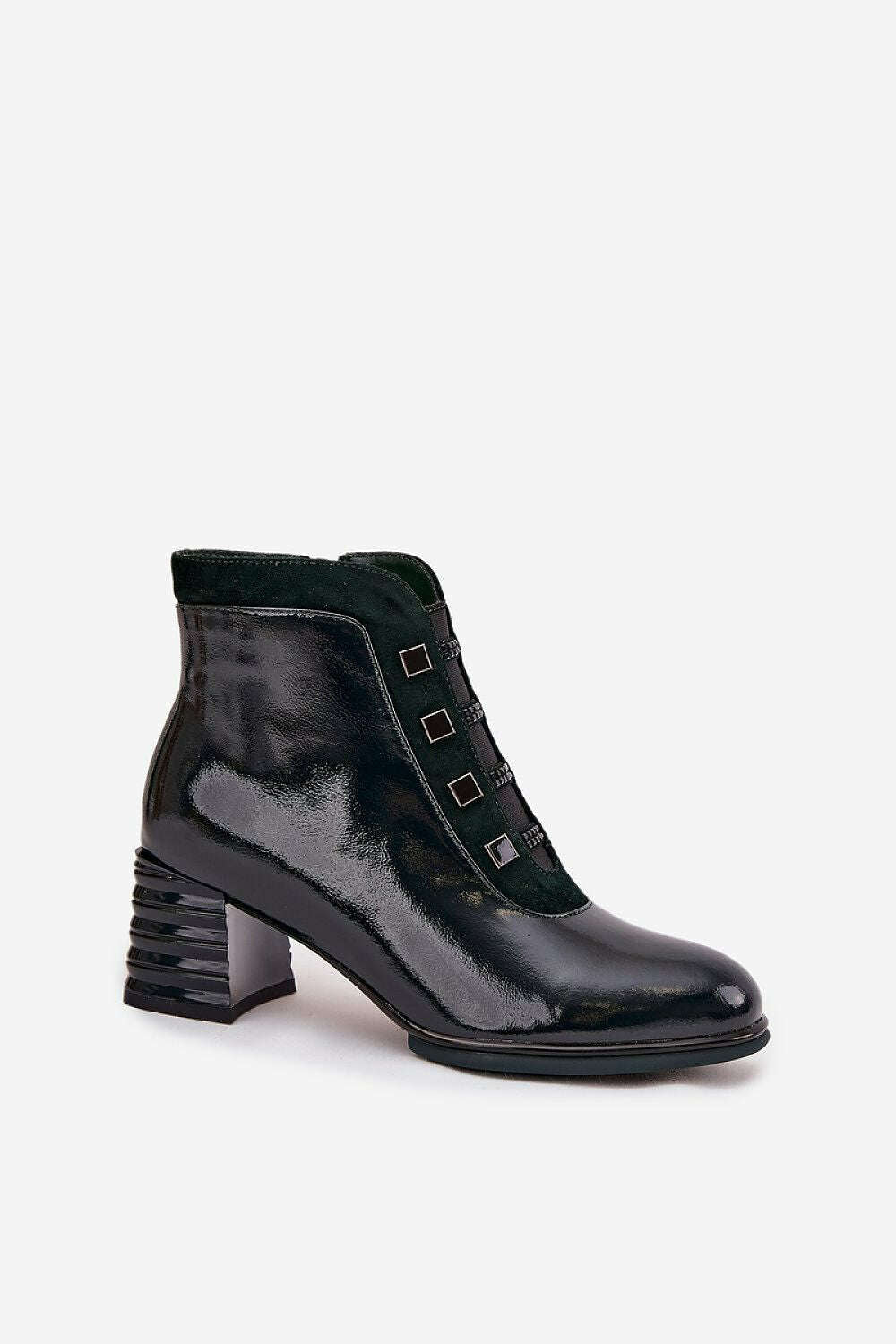 Experience modern sophistication with these women's patent leather heeled ankle boots, blending elegance and comfort for cooler days.