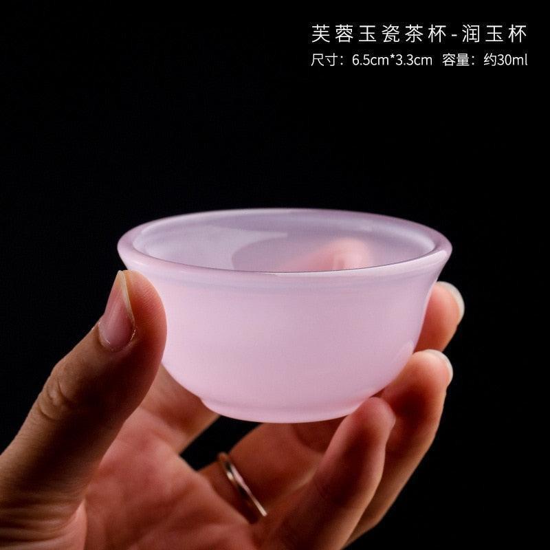 Hibiscus Pink Jade Porcelain Tea Cup Collection - Timeless Sophistication for Chinese Tea Ceremonies.