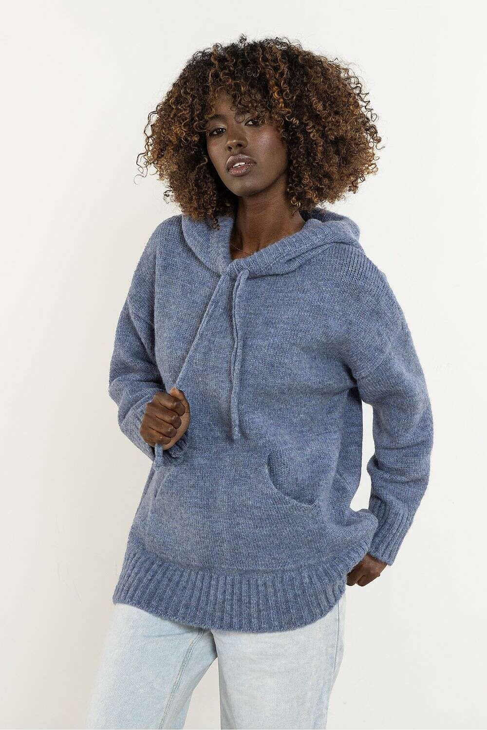 This warm hoodie sweater features long sleeves and a cozy hood, crafted in Poland from a soft, breathable wool knit that keeps you comfortable during autumn mornings and throughout winter.