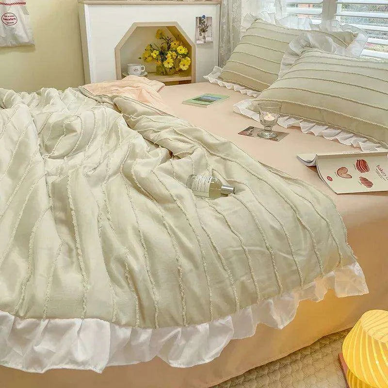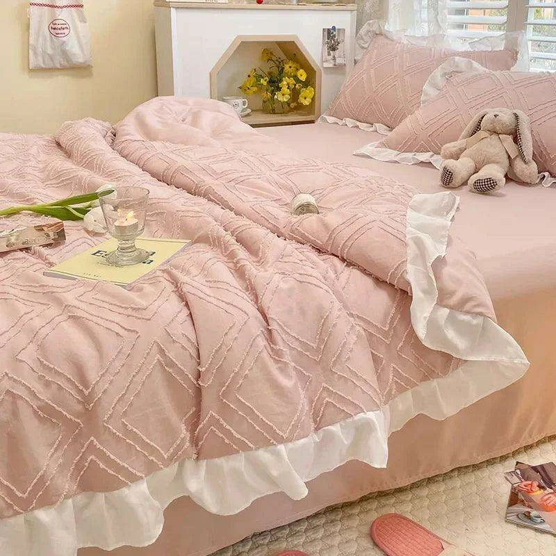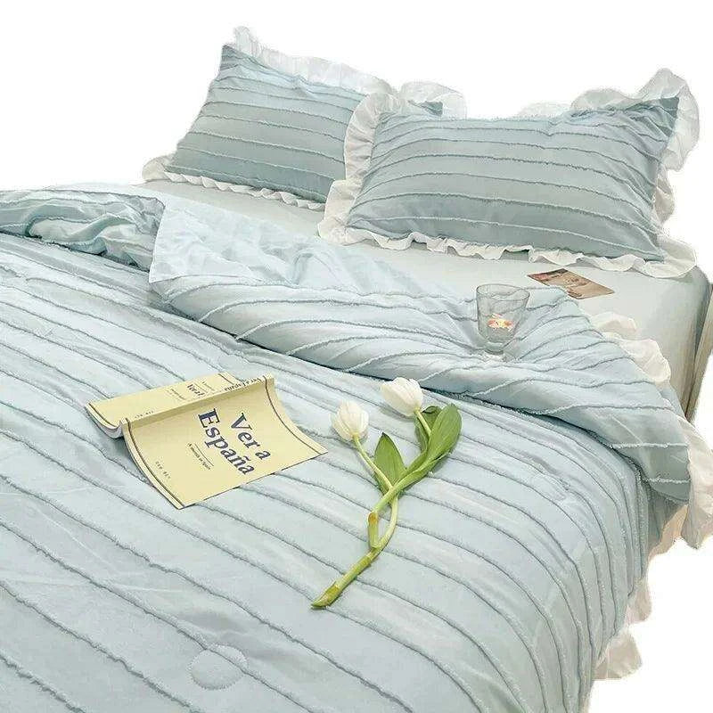 Korean Lace Premium Washed Cotton Summer Quilt Set – Four-Piece Elegance - Très Elite